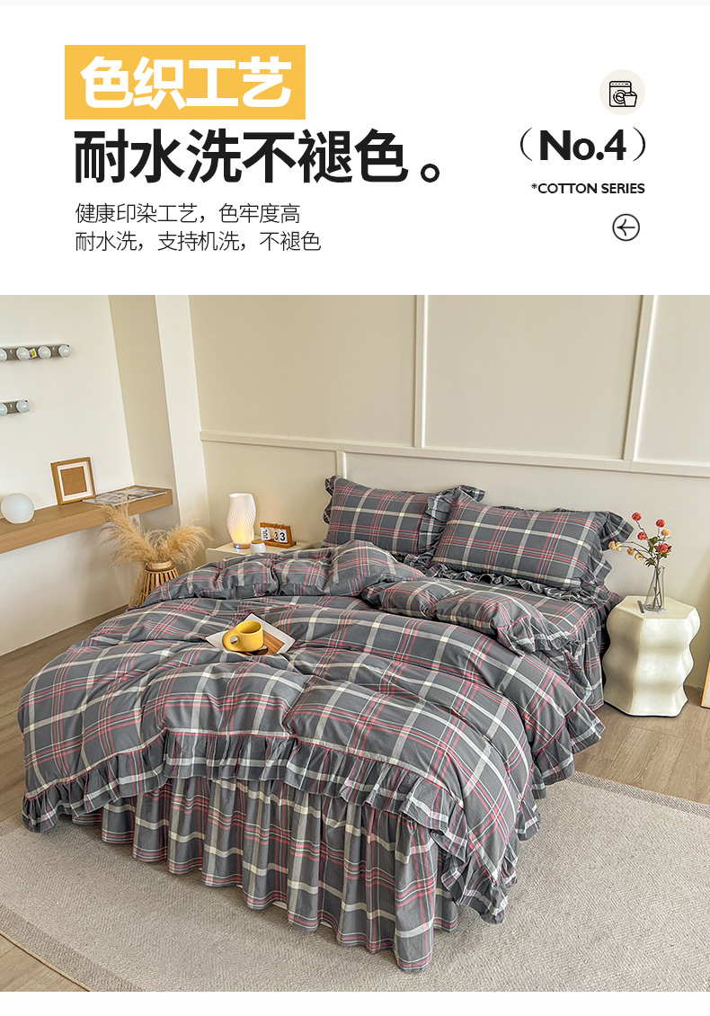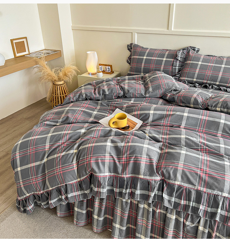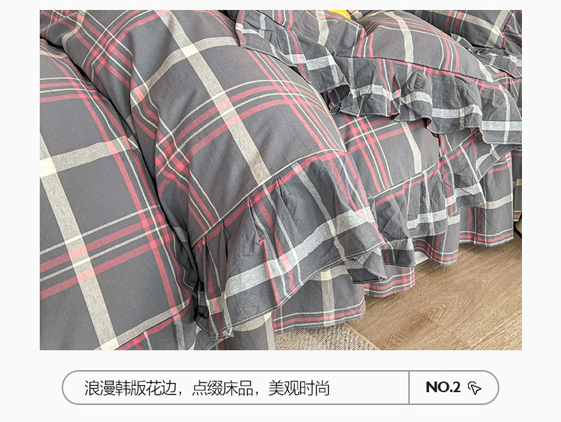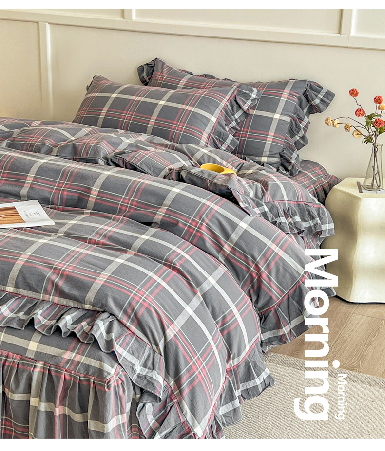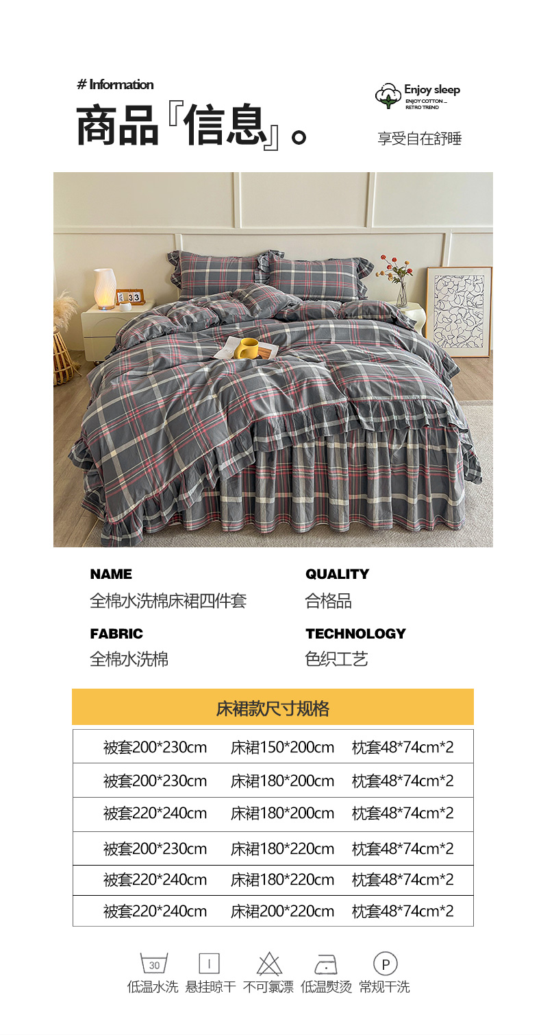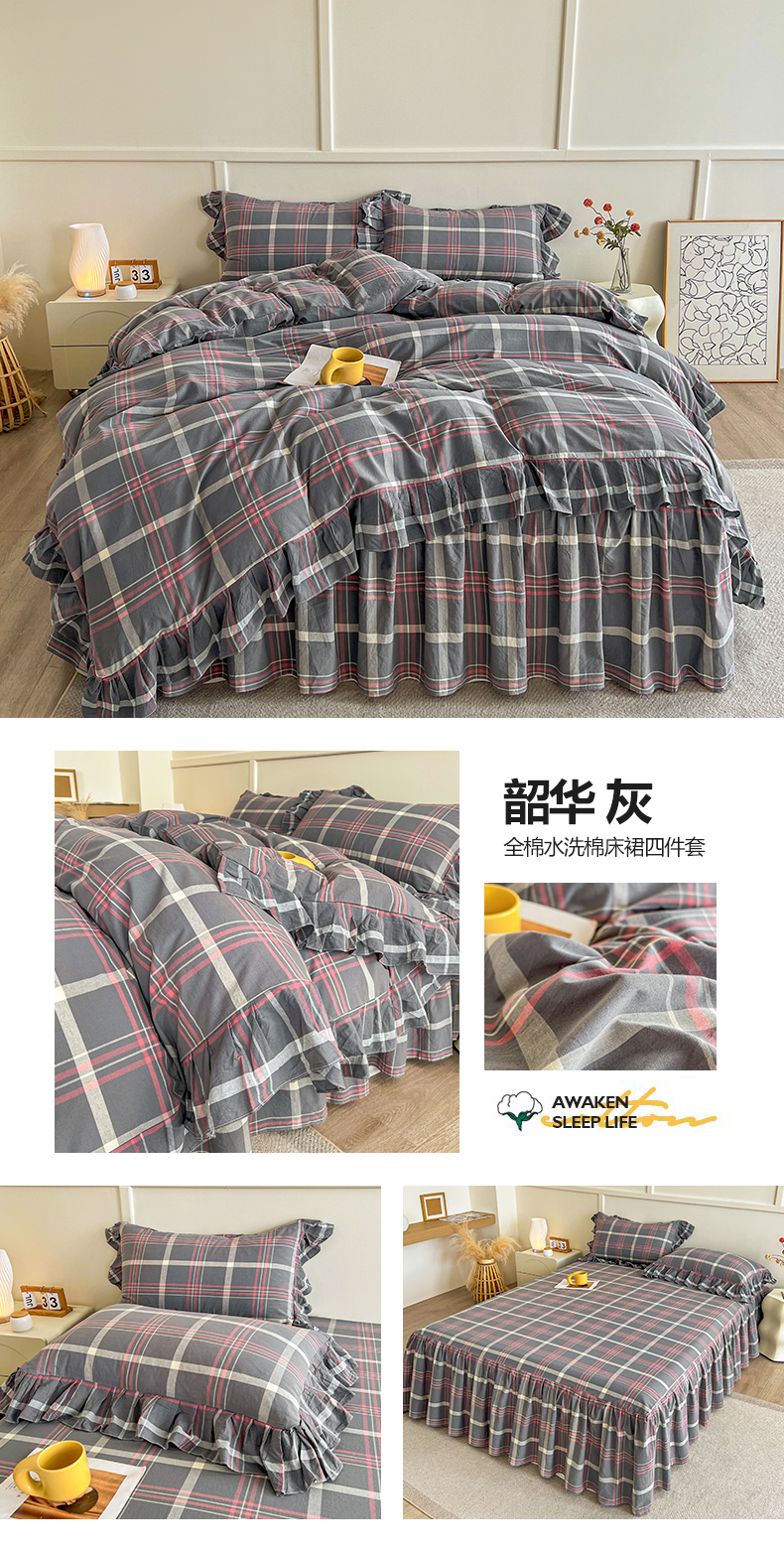 当前位置: 91家纺网 > 商品网购 > 床品套件 > 四件套 > 全棉普通四件套 > 糯米猪家纺 2024新款全棉水洗棉床裙四件套 韶华 灰