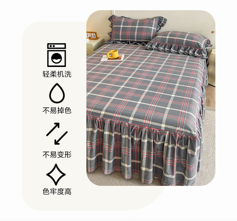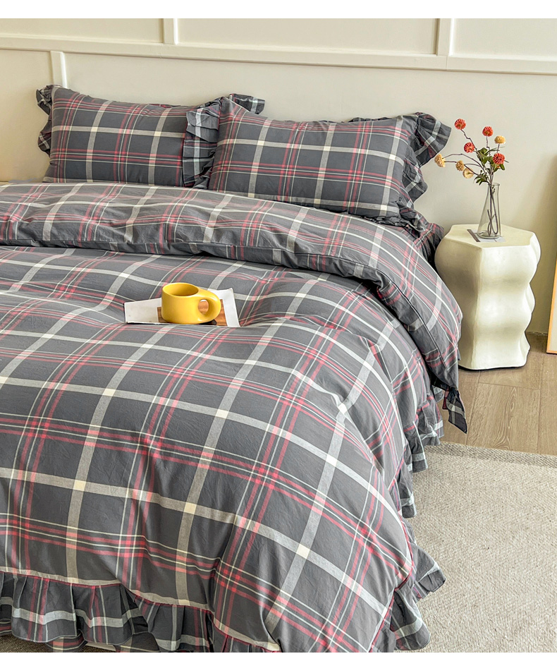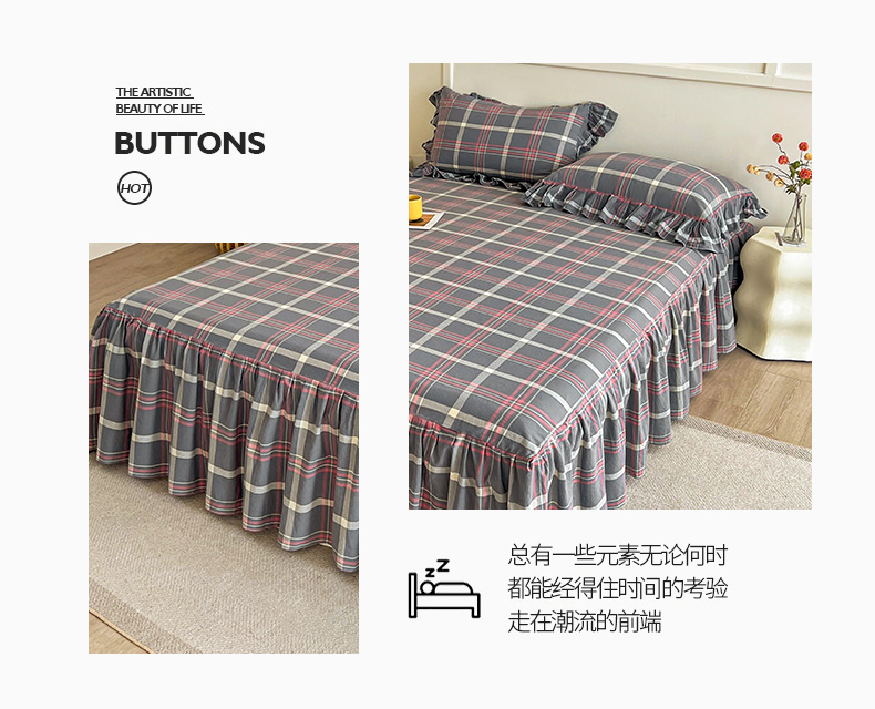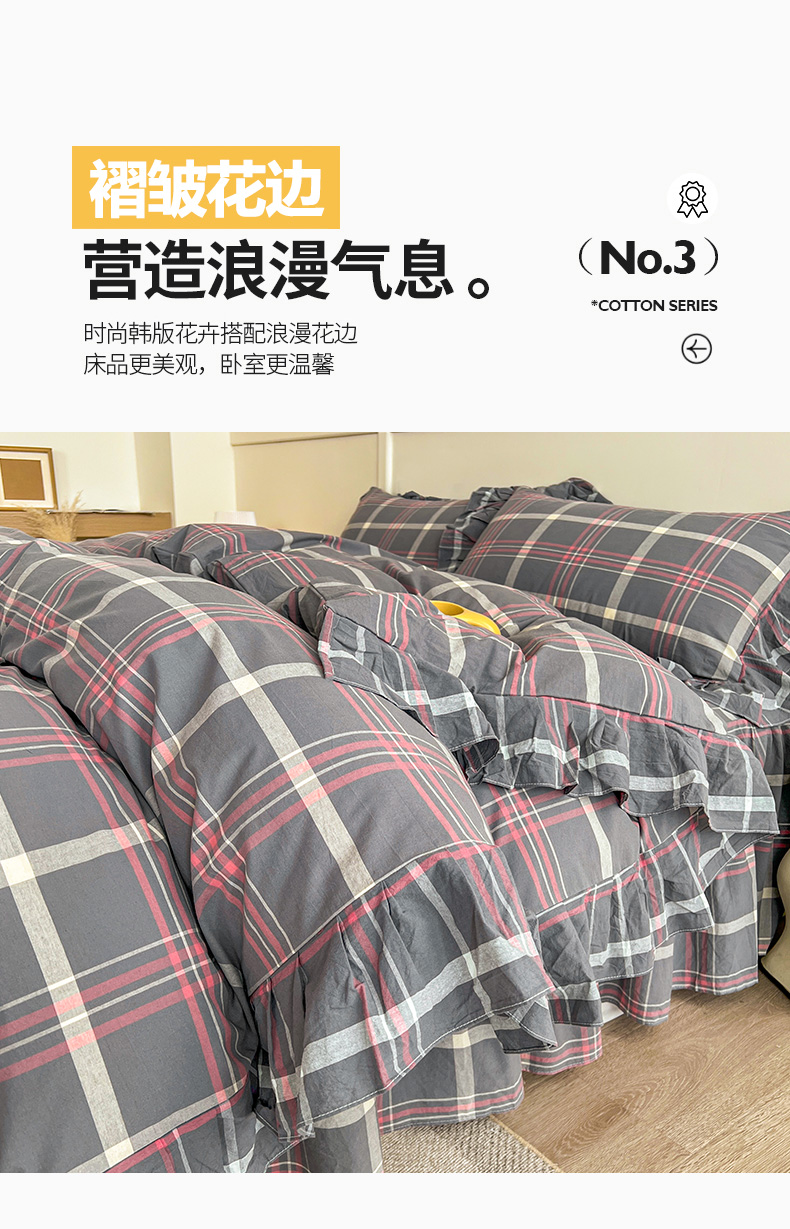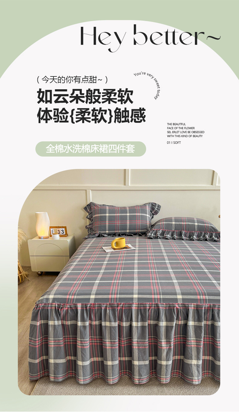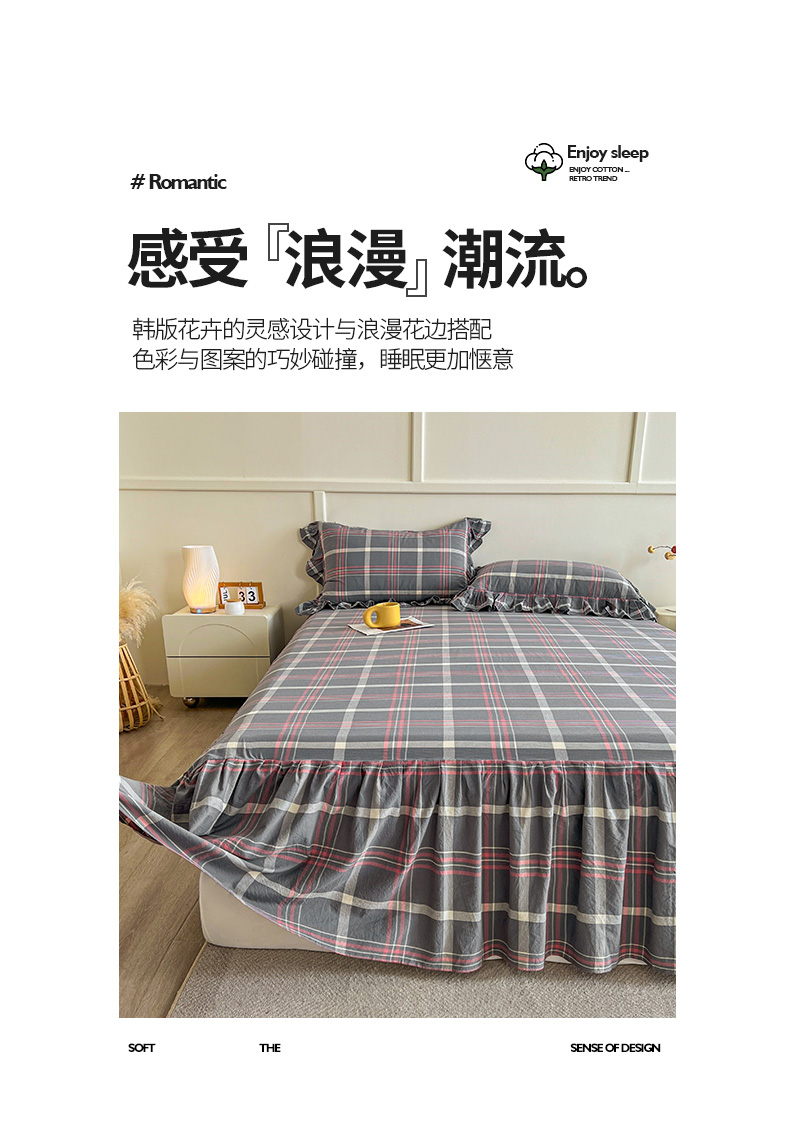 当前位置: 91家纺网 > 商品网购 > 床品套件 > 四件套 > 全棉普通四件套 > 糯米猪家纺 2024新款全棉水洗棉床裙四件套 韶华 灰