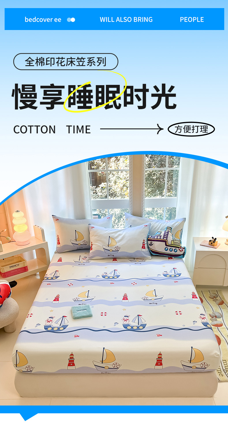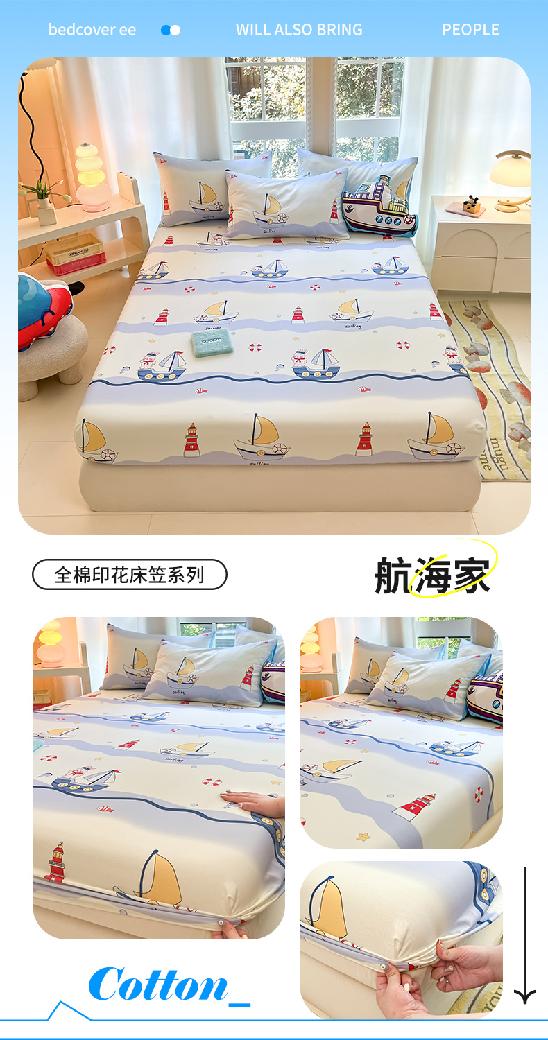 博雅 2024新款全棉宇航员印花单床笠单被套 航海家