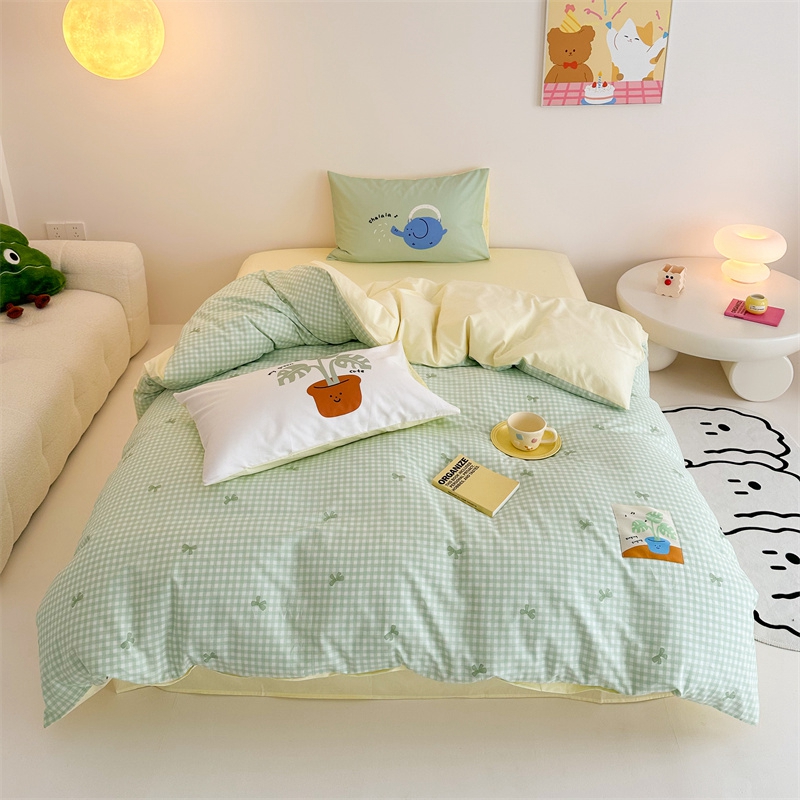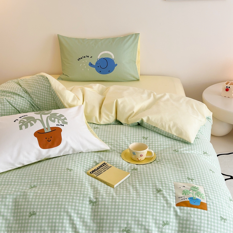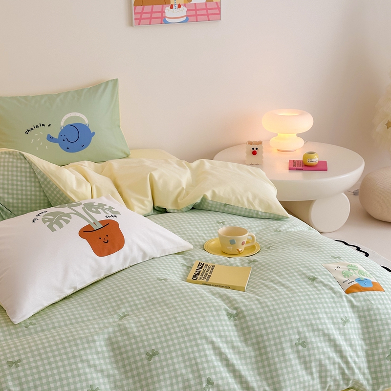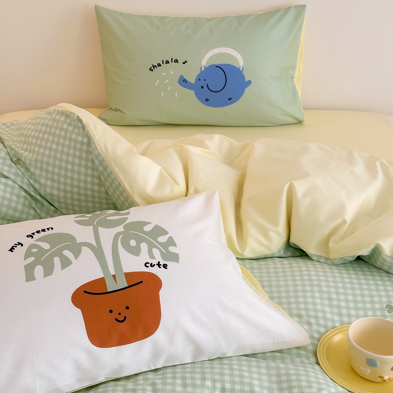 珺柔家纺 2024新款全棉40支贴画数码印花枕套四件套 音乐小绿