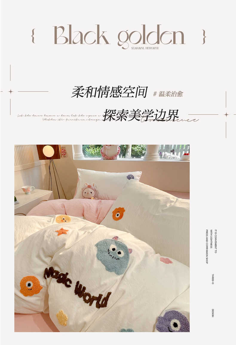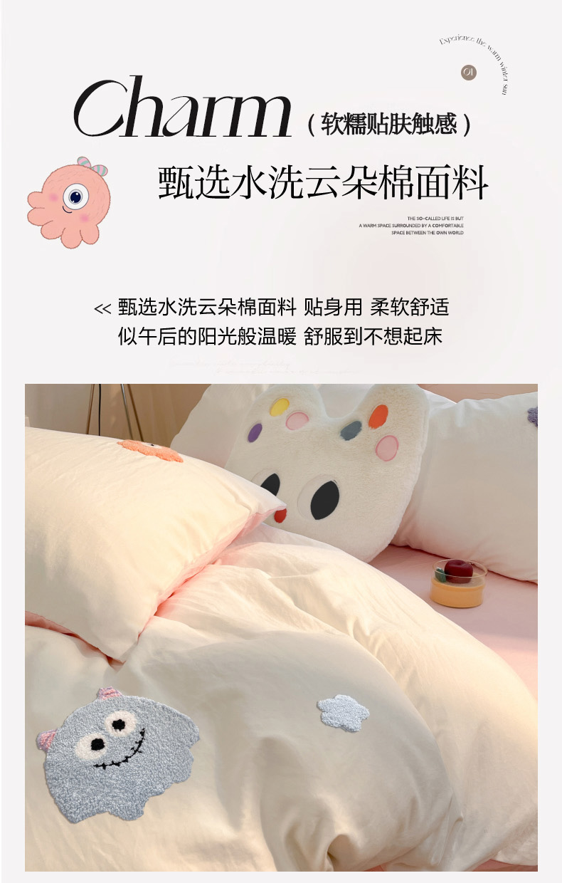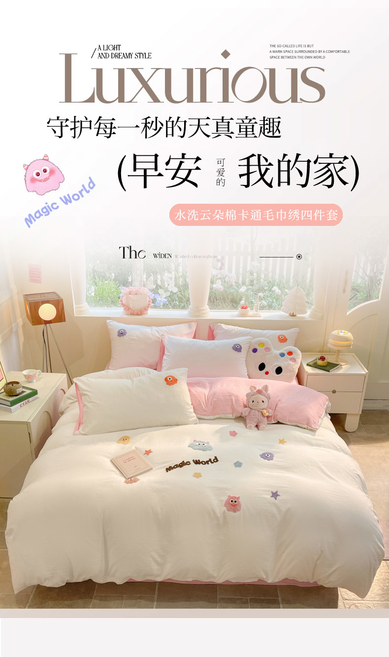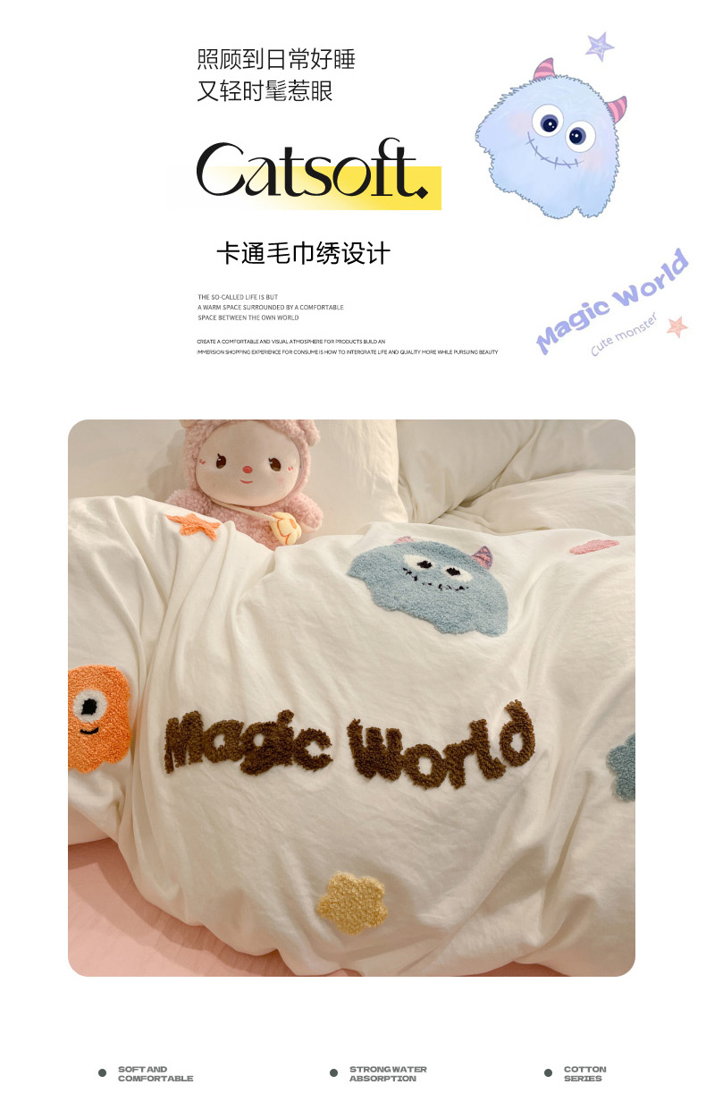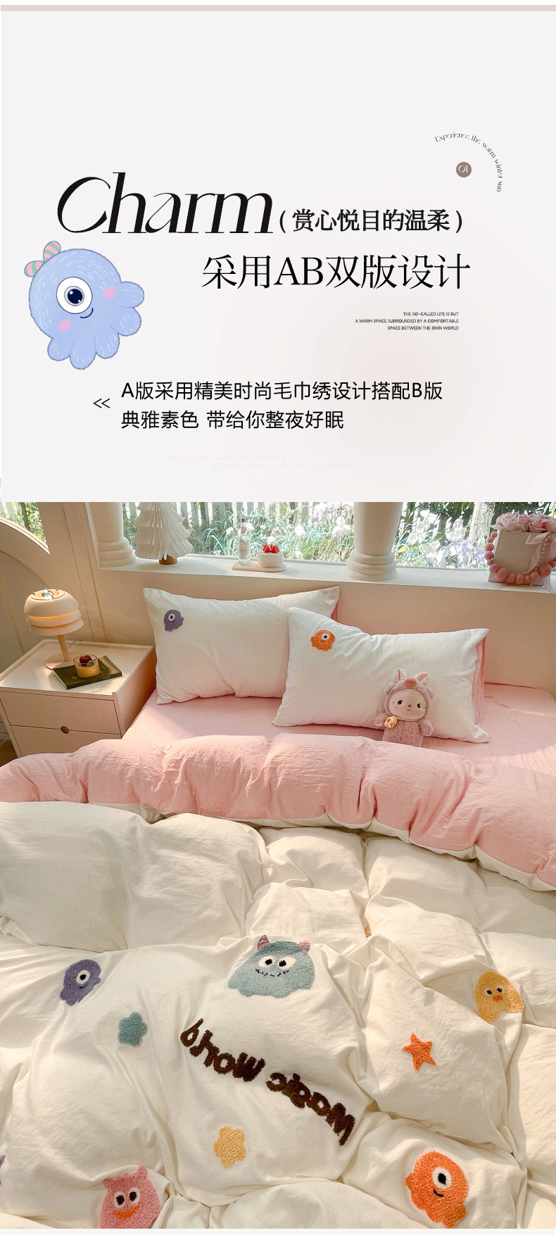 (总)葡萄家 2024新款毛巾绣水洗云朵棉萌系小怪兽四件套