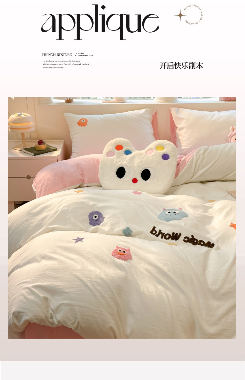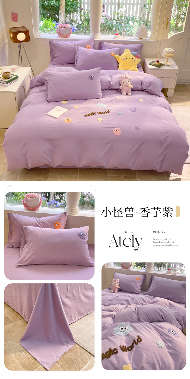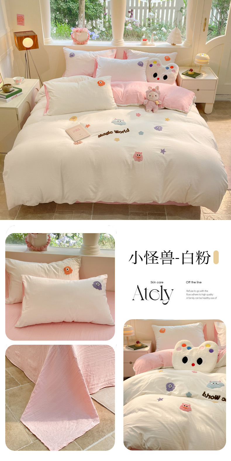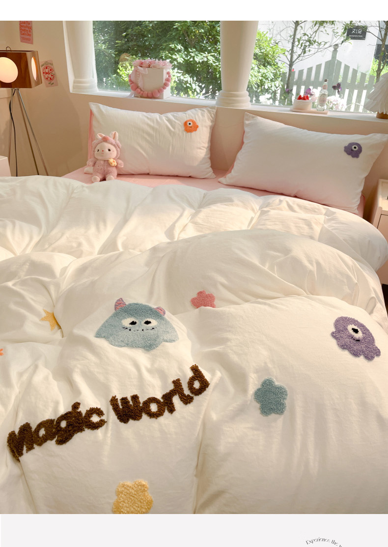 (总)葡萄家 2024新款毛巾绣水洗云朵棉萌系小怪兽四件套