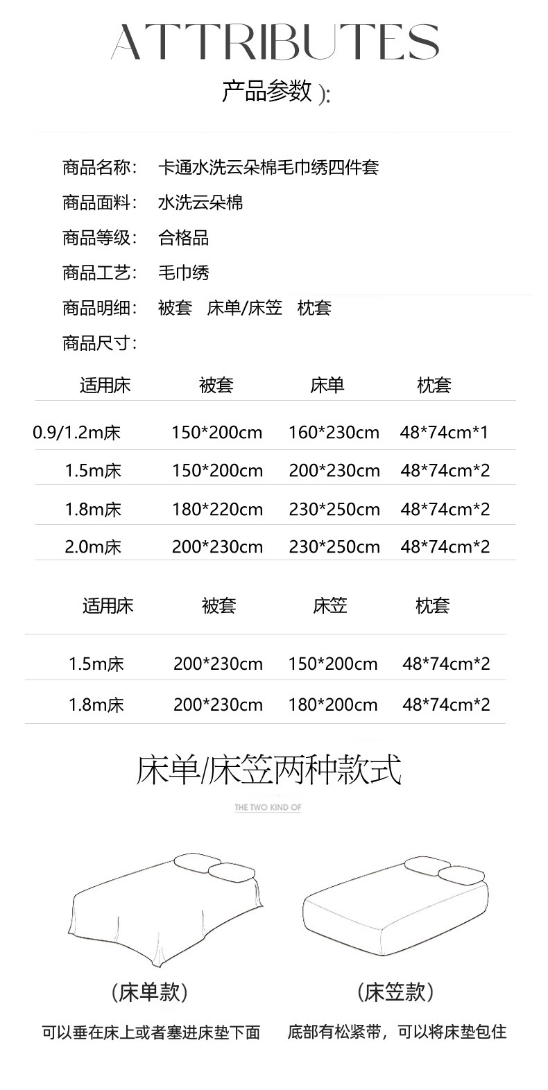 商品名称:(总)葡萄家 2024新款毛巾绣水洗云朵棉萌系小怪兽四件套
