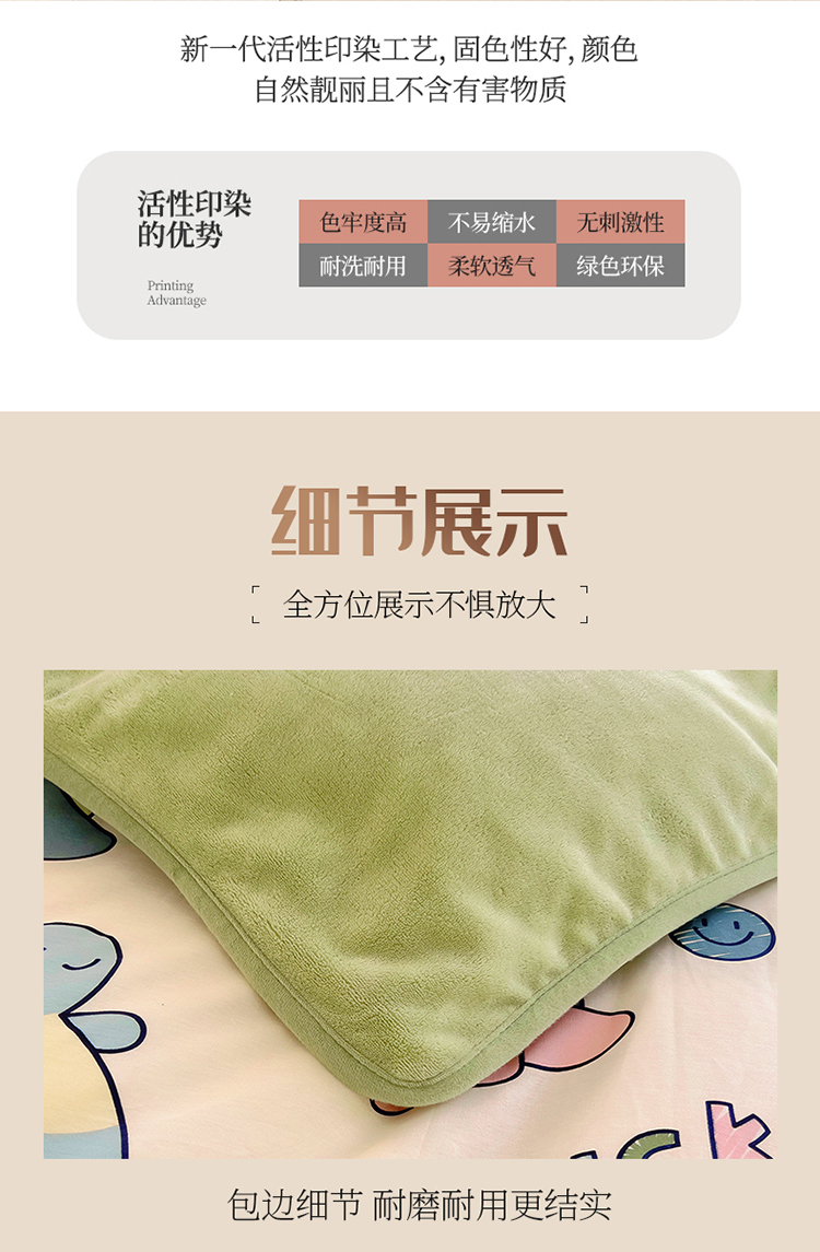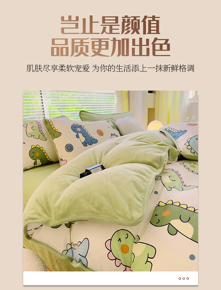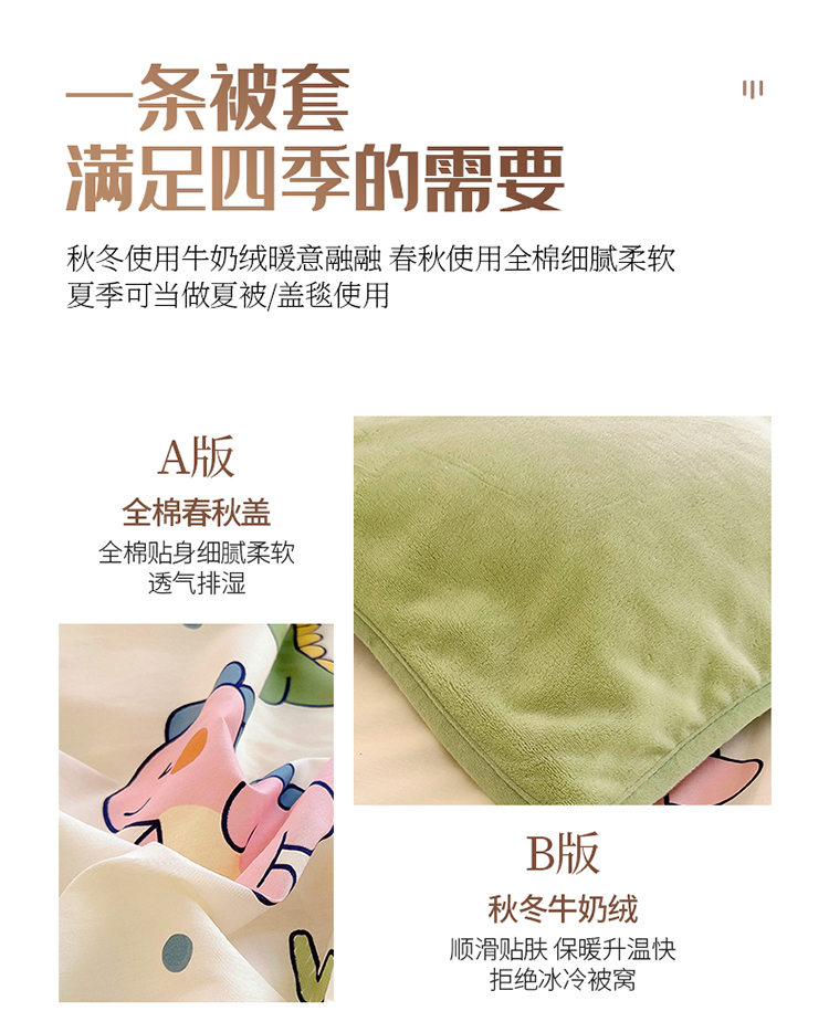 商品名称:2024新款全棉加牛奶绒四件套单被套系列-单被套 恐龙家族