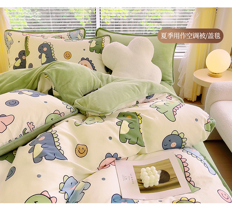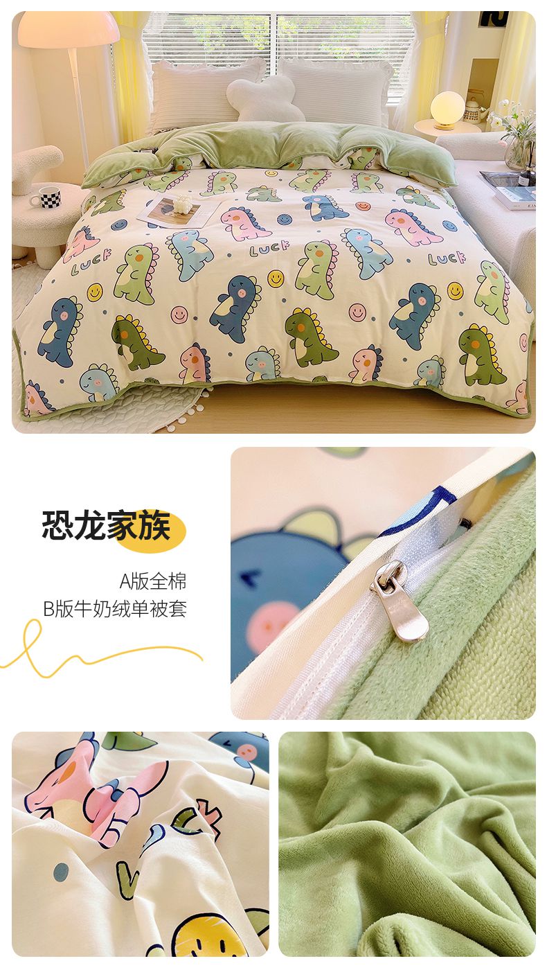 2024新款全棉加牛奶绒四件套单被套系列-单被套 恐龙家族