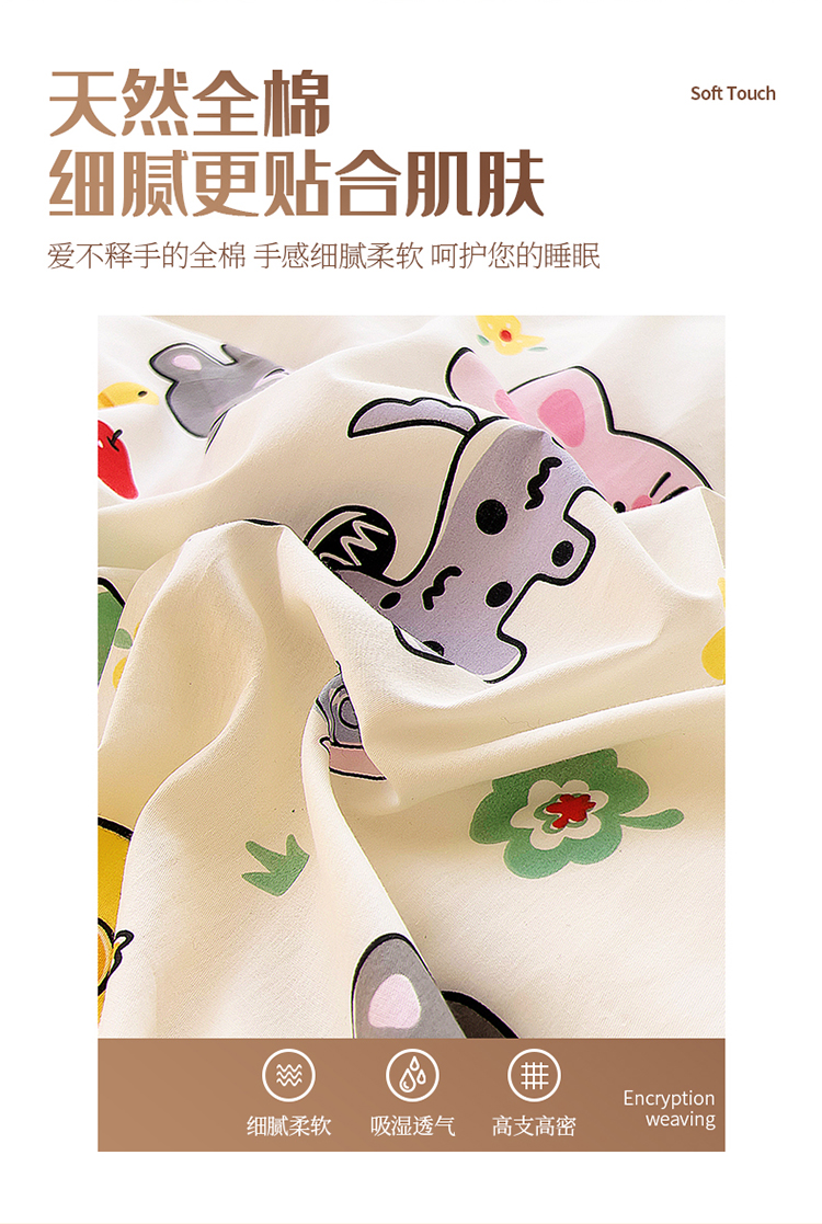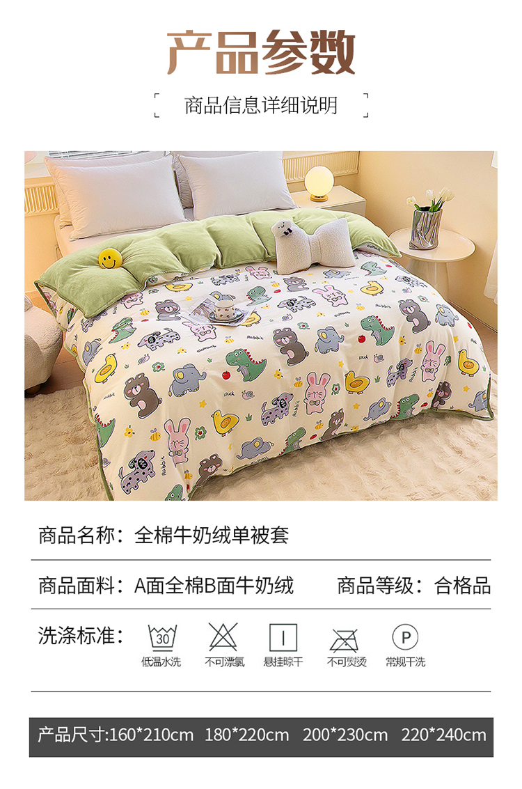商品名称:2024新款全棉加牛奶绒四件套单被套系列-单被套 奇妙农场