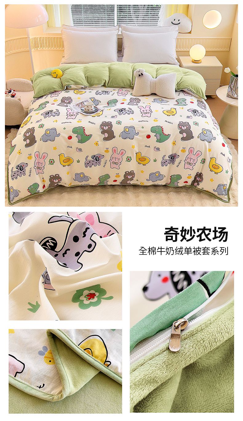 2024新款全棉加牛奶绒四件套单被套系列-单被套 奇妙农场
