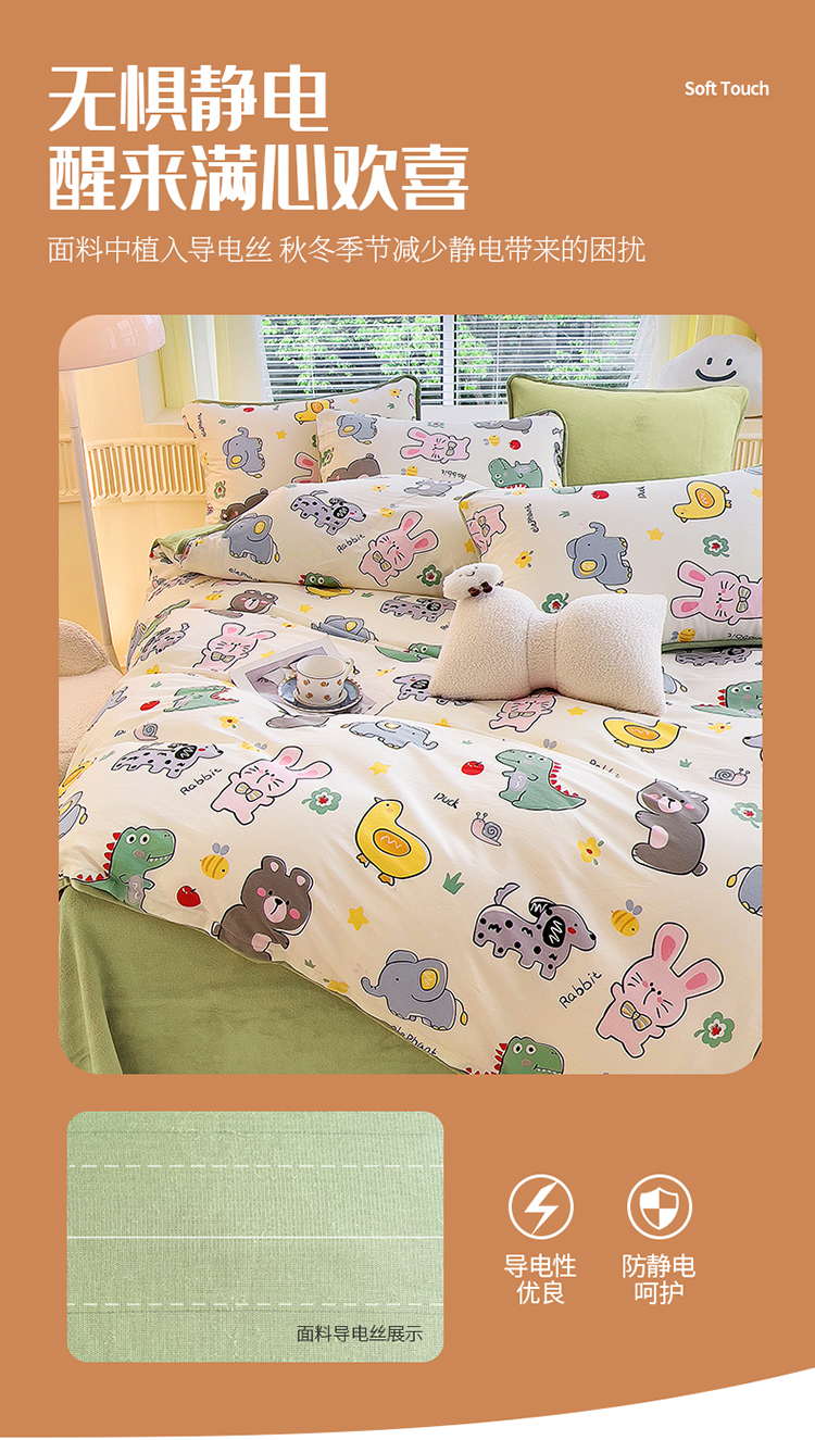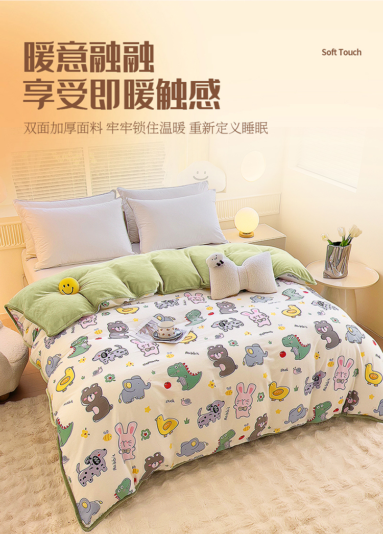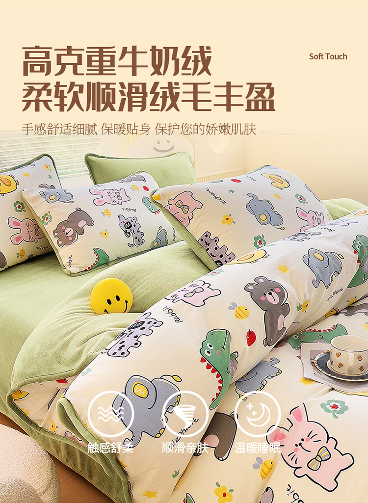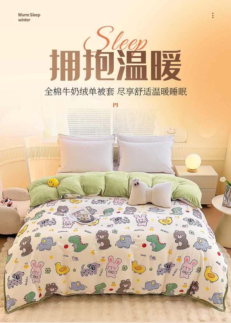 琪琪阁 2023新款A棉B绒棉加绒牛奶绒四件套单被套 快乐伙伴,快乐伙伴