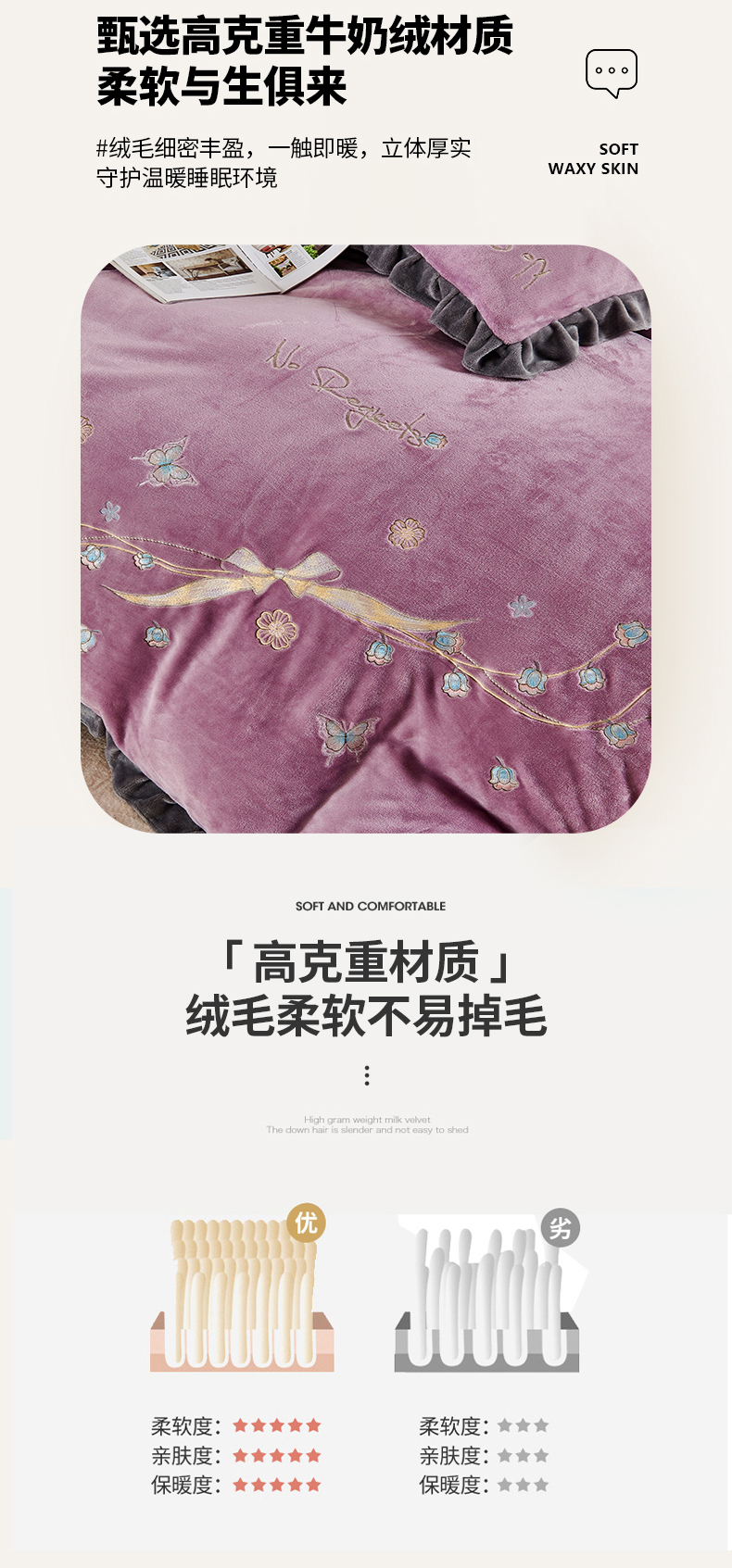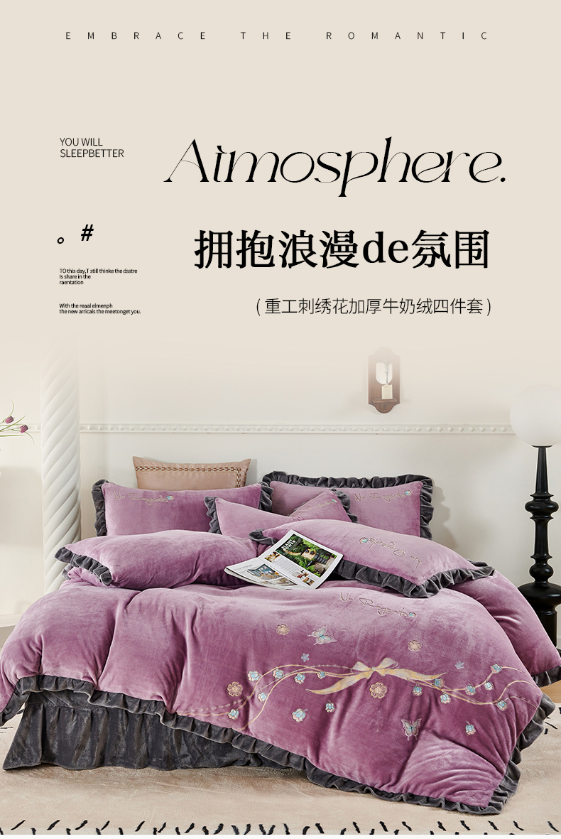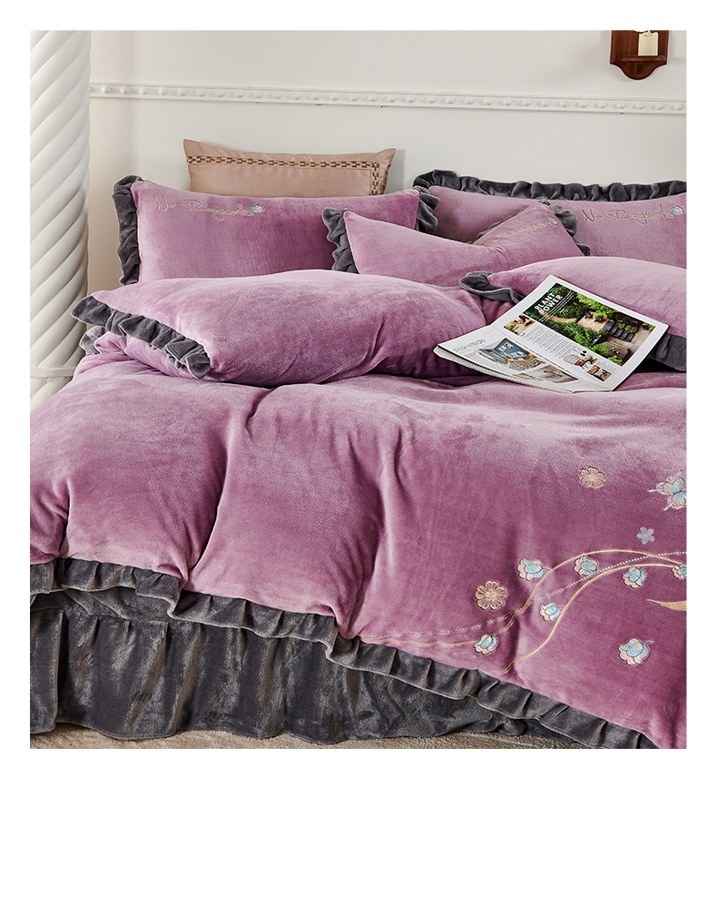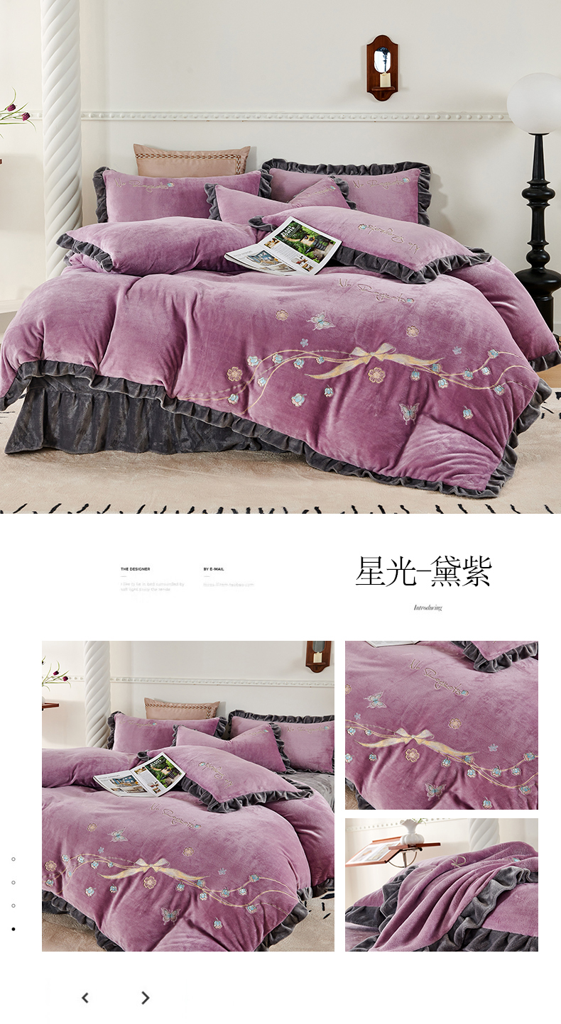 商品名称:慕克斯 2024新款重工绣花牛奶绒四件套星光 星光-黛紫