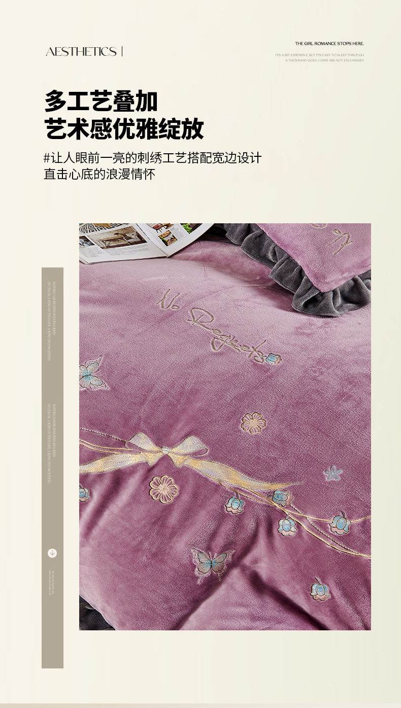 慕克斯 2025直播新款高克重8.5斤纯色刺绣牛奶绒四件套 朝花夕拾-寐粉,朝花夕拾-寐粉