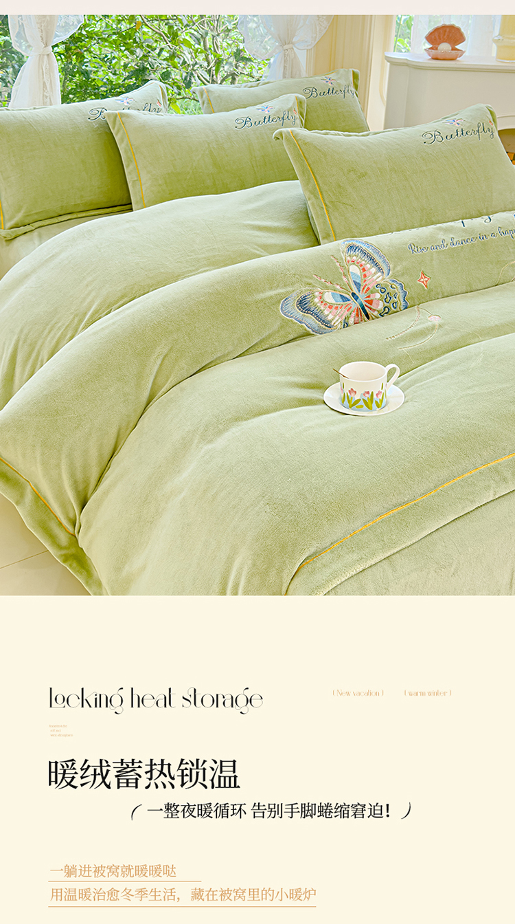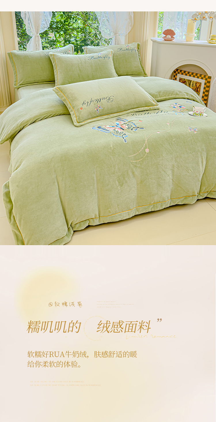 慕克斯 2024新款重工刺绣牛奶绒四件套-花仙子 花仙子抹茶绿