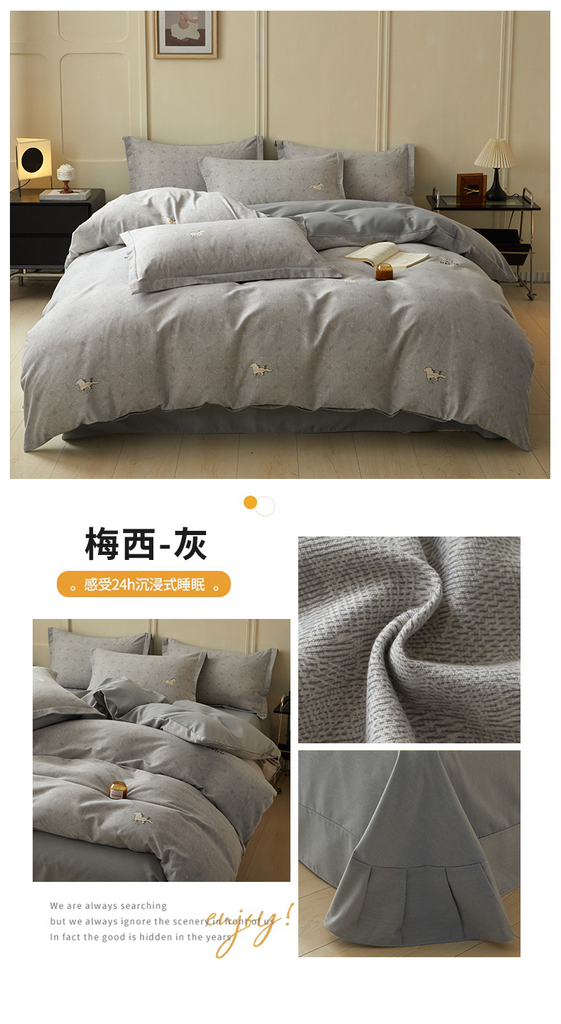 启程家纺 2024全棉生态磨毛印花四件套 梅西-灰