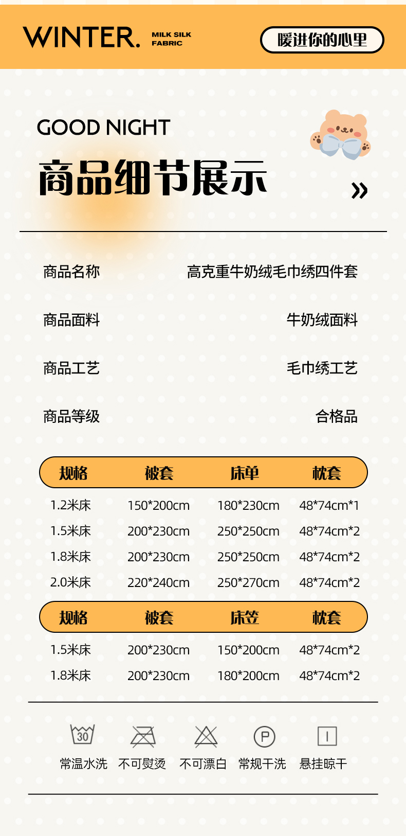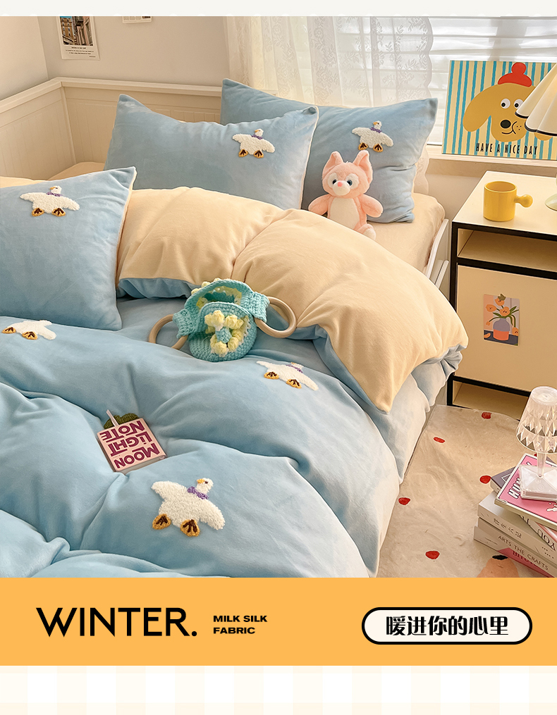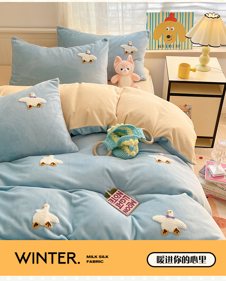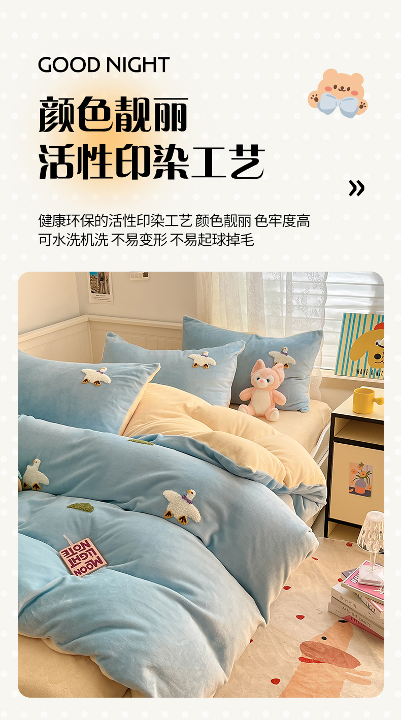 商品名称:(总)2024新款牛奶绒毛巾绣花四件套宝宝绒婴儿绒秋冬加厚法莱绒法兰绒珊瑚绒水晶绒三件套