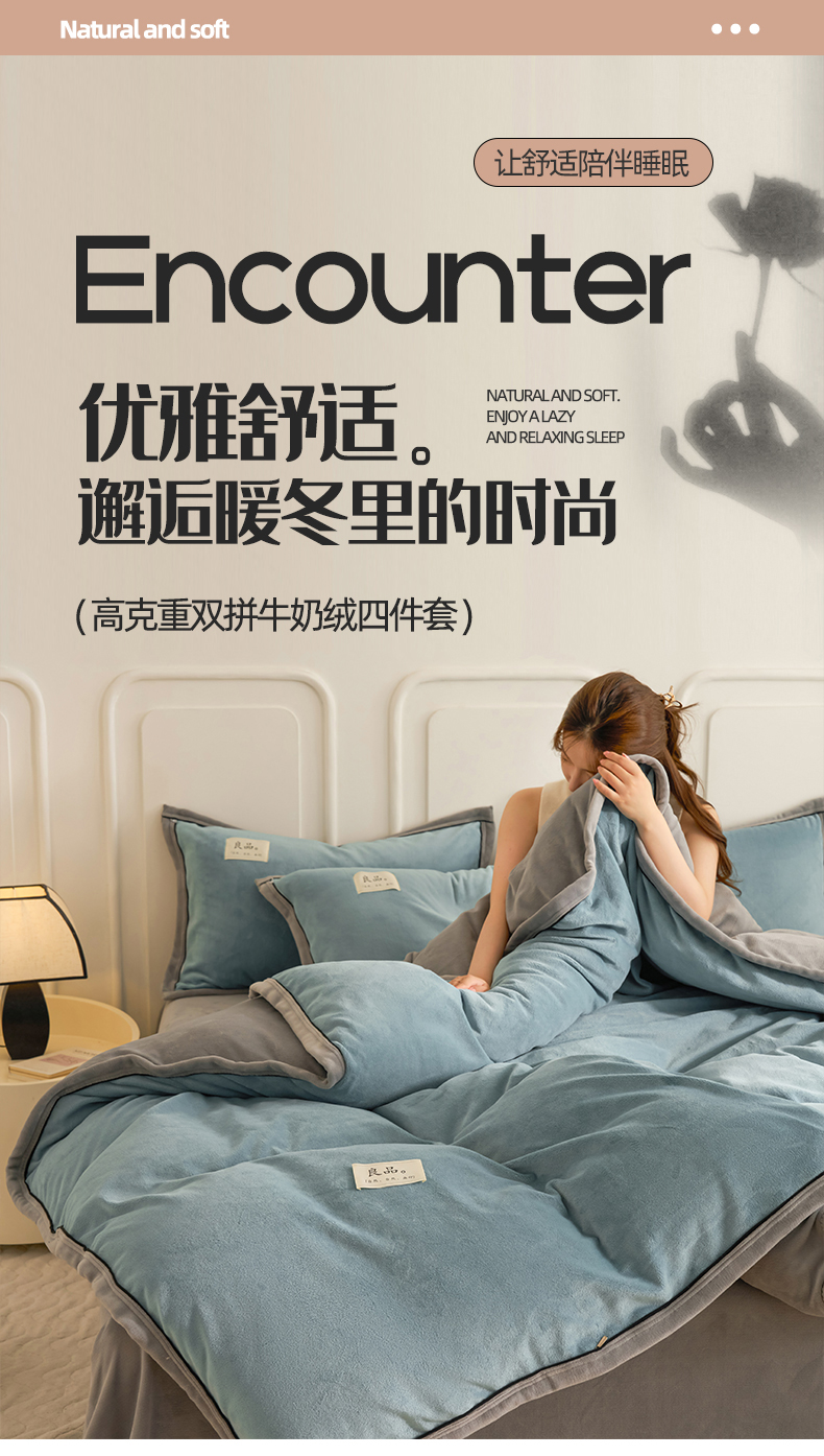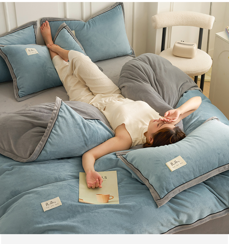 当前位置: 91家纺网 > 商品网购 > 床品套件 > 四件套 > 牛奶绒四件套 > 贝诗梦 2025新款高克重纯色牛奶绒宽边工艺款四件套 双拼牛奶绒-宾利蓝+浅灰