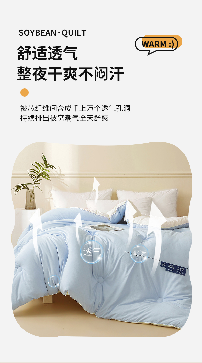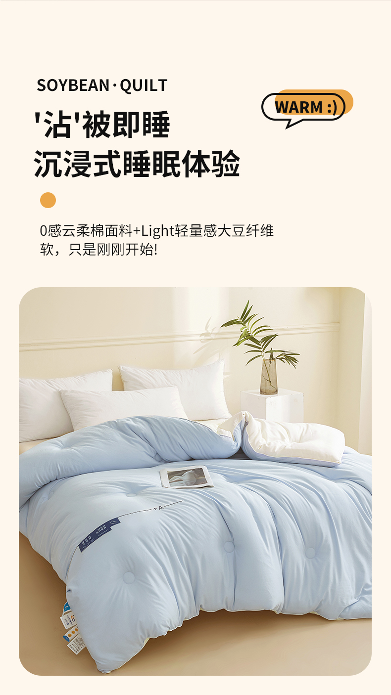 • 91家纺网 家纺一手货源 找家纺 荔禾家居 2024新款A类深睡眠系列大豆被子被芯 碧落蓝