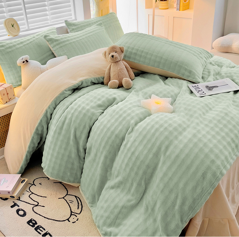 琪琪阁家纺 2024新款牛奶绒泡泡绒单被套 抹茶绿