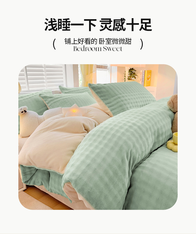 商品名称:琪琪阁家纺 2024新款牛奶绒泡泡绒单被套 抹茶绿