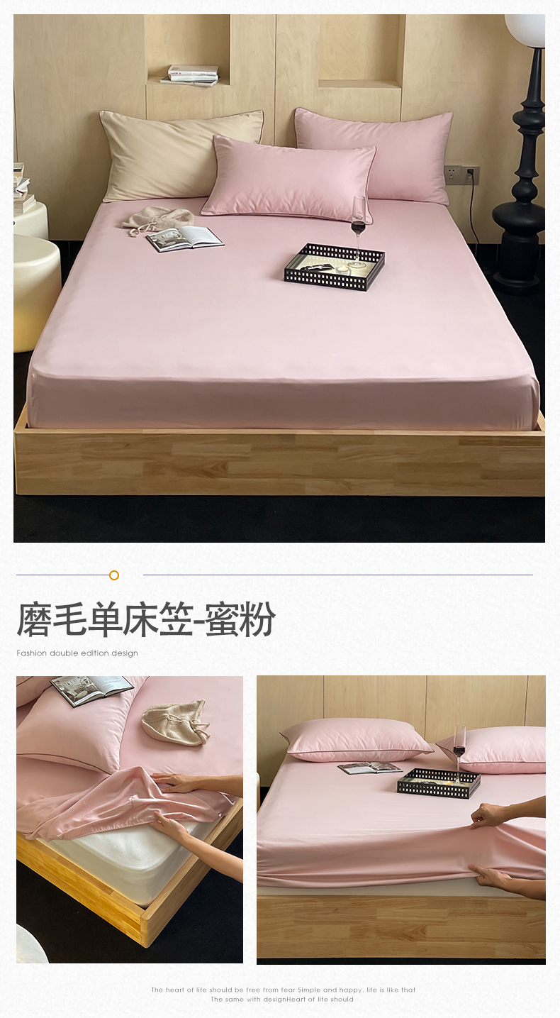 2024新款加厚50S全棉磨毛单品床笠床单 蜜粉