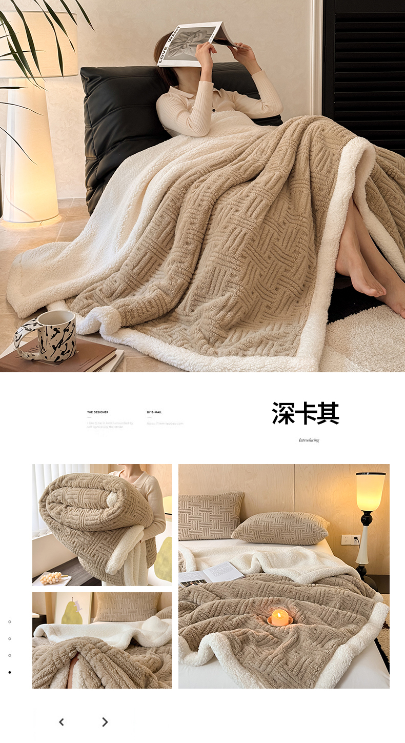 商品名称:欧邦 新款提花舒棉绒羊羔绒毛毯(外贸供货) 深卡其