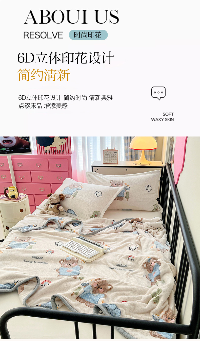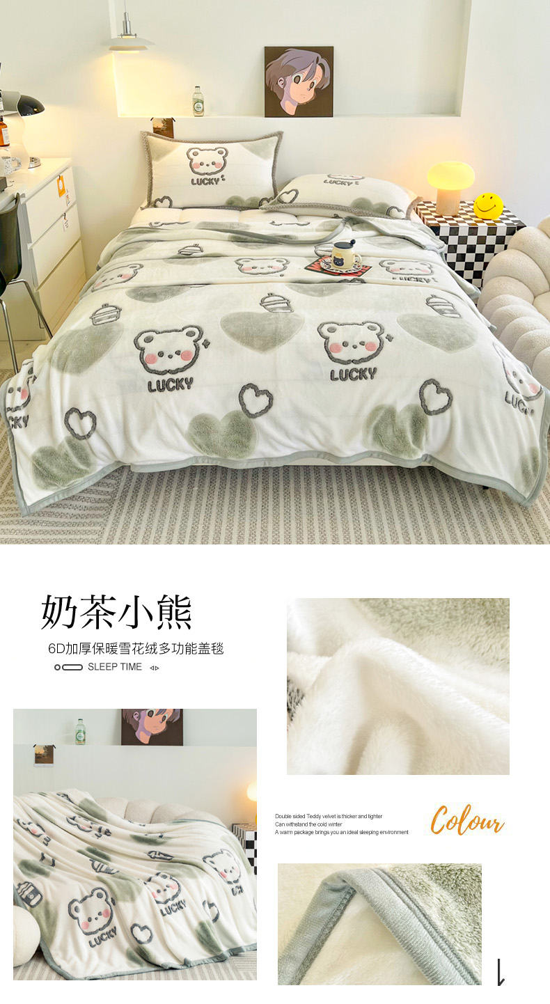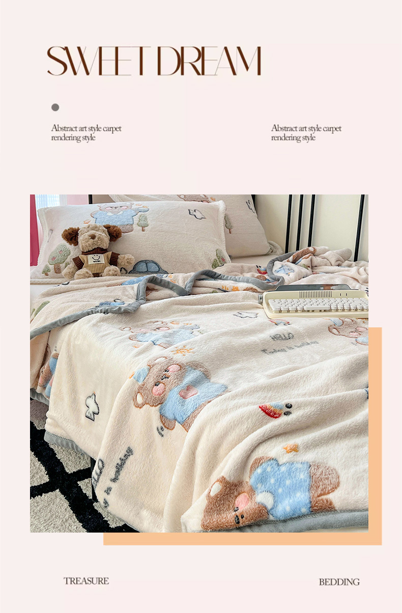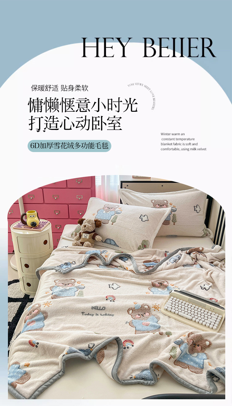 倾慕家纺 2024新款加厚保暖6D立体雪花绒系列-毛毯 汽车小熊
