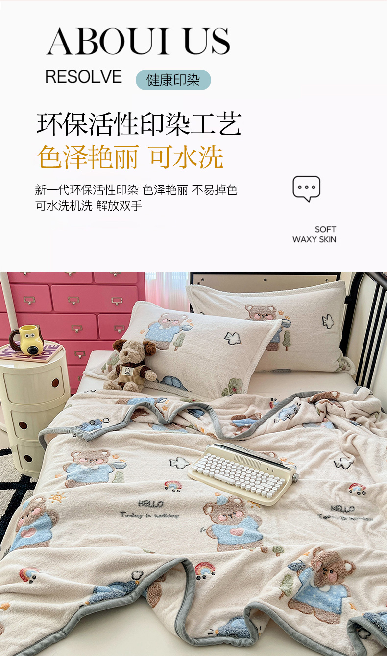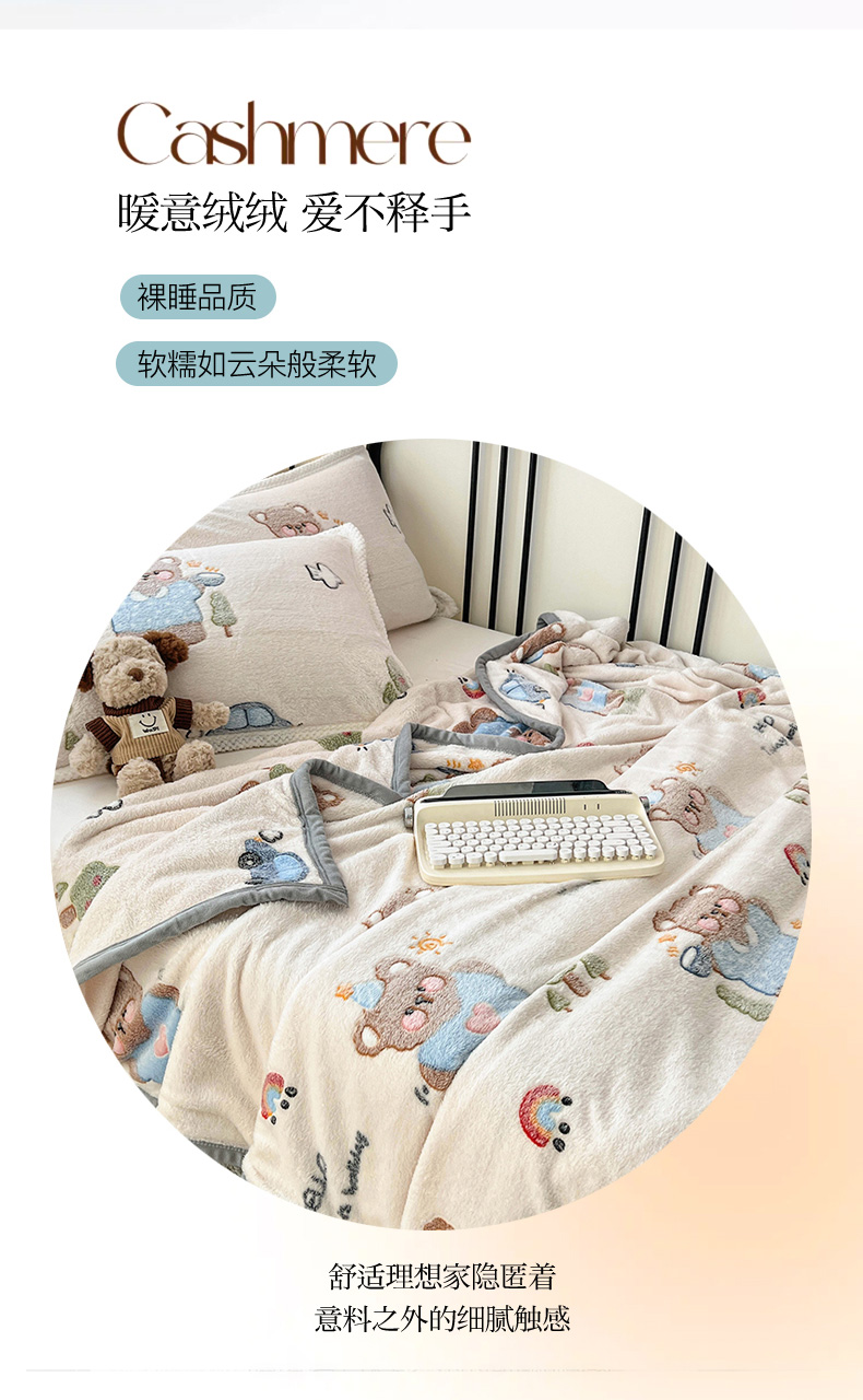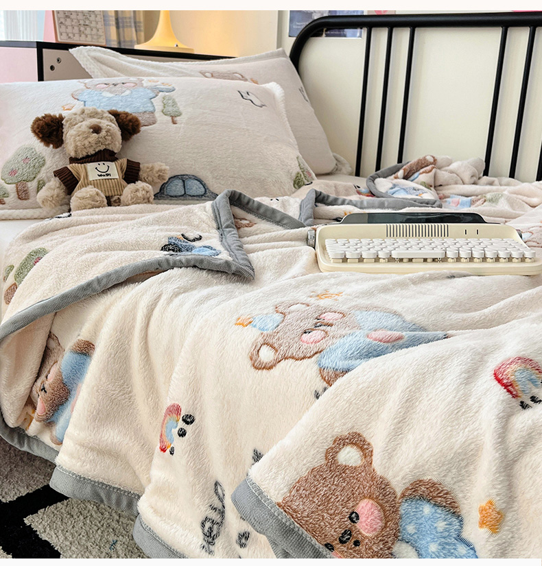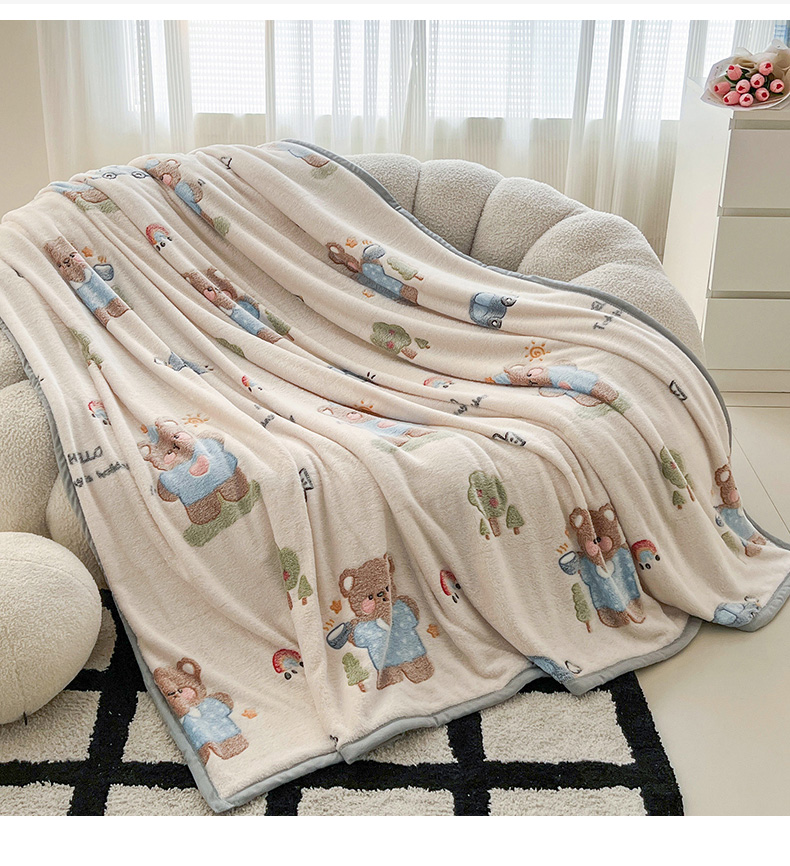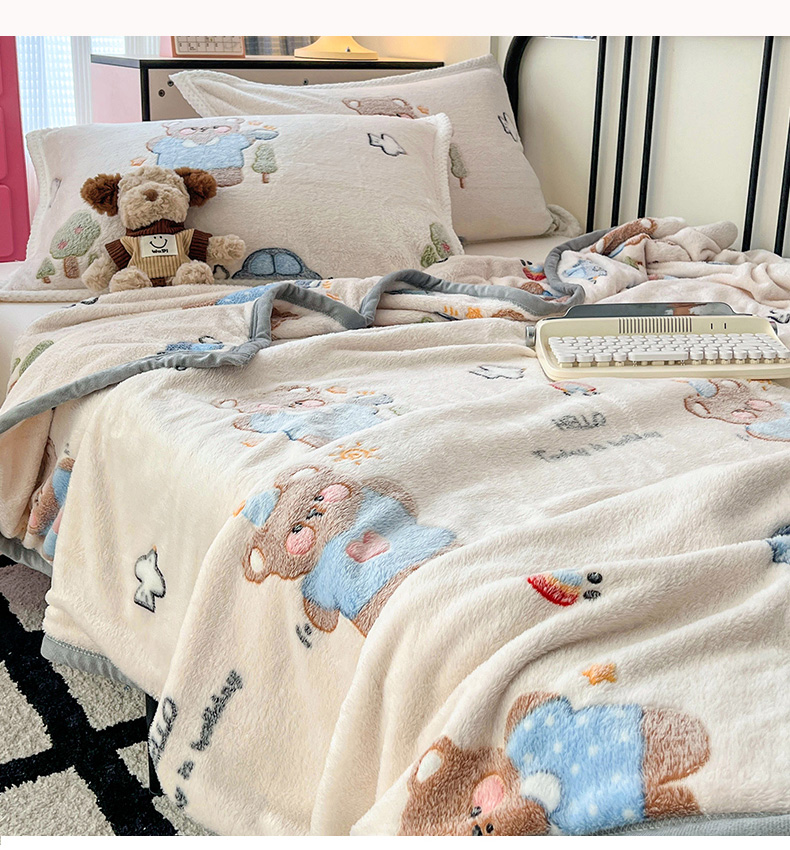 倾慕家纺 2024新款加厚保暖6D立体雪花绒系列-毛毯 汽车小熊