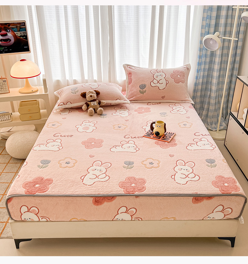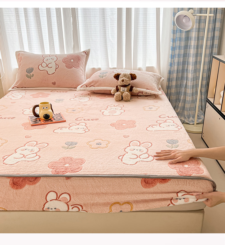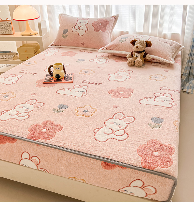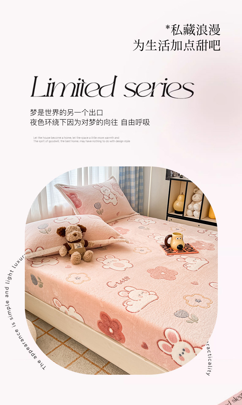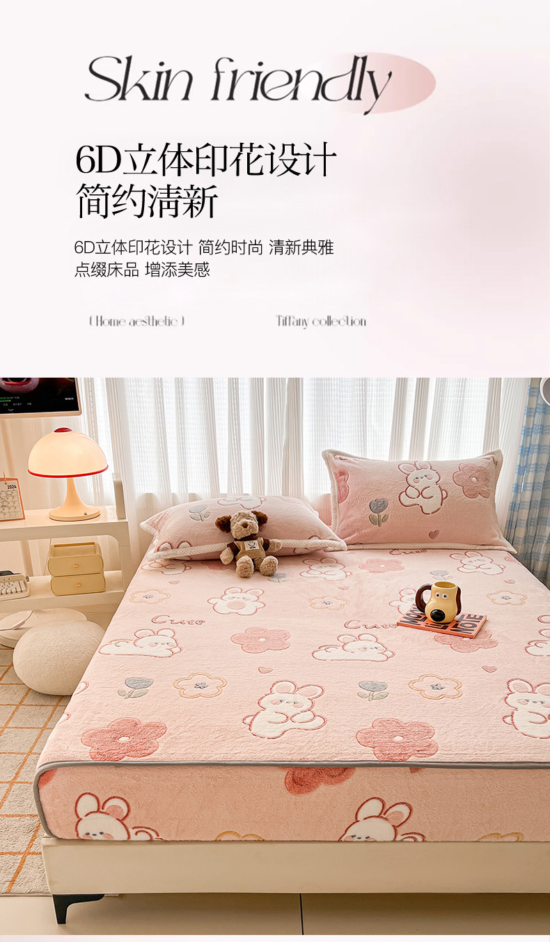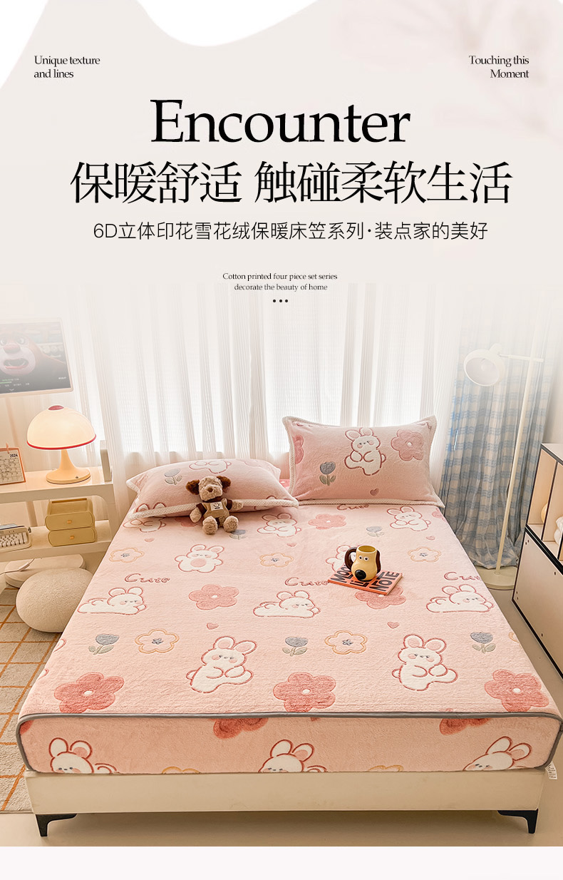 倾慕家纺 2024新款加厚保暖6D立体雪花绒系列-单床笠 活泼小兔