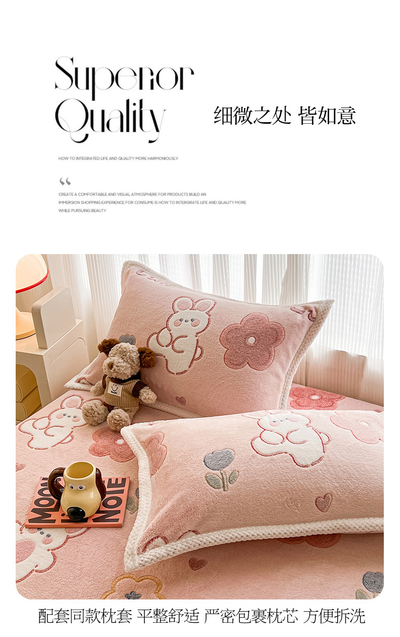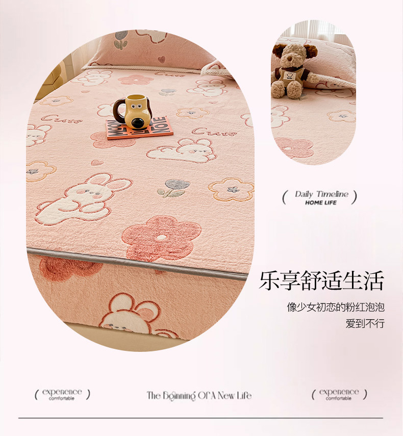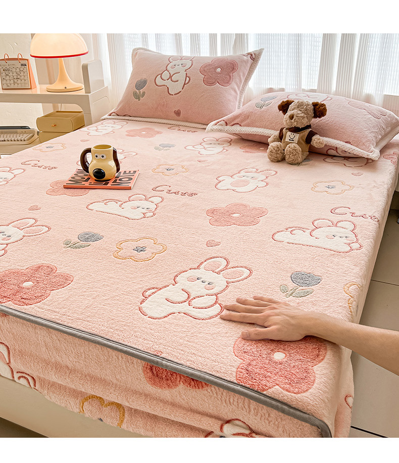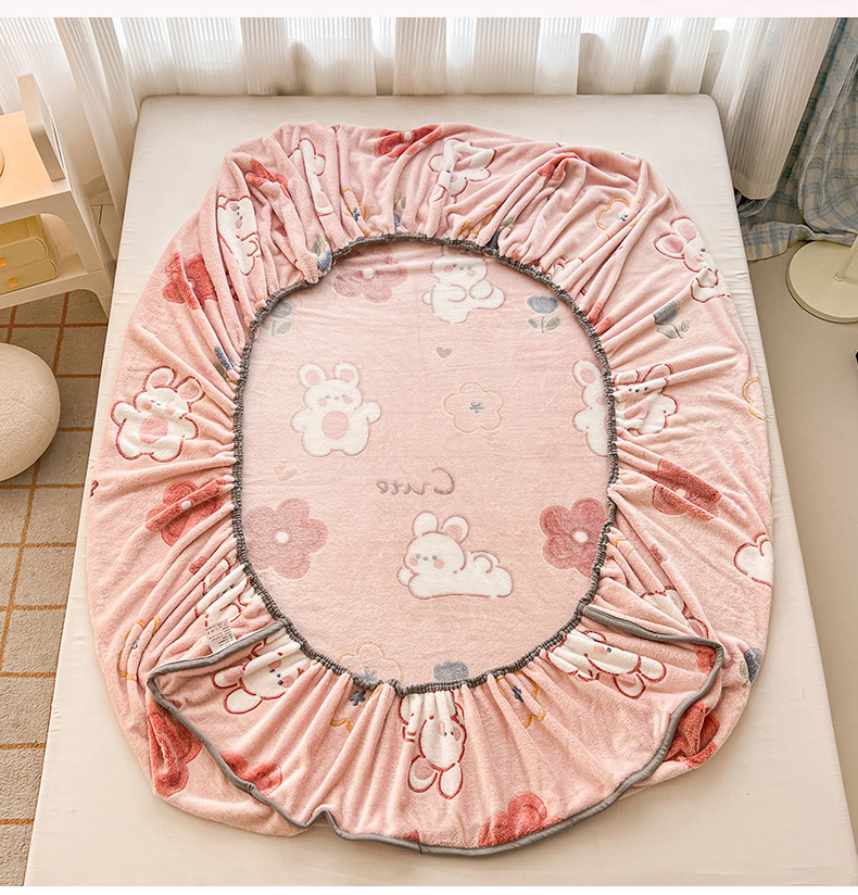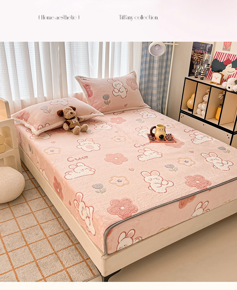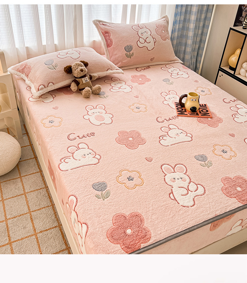 倾慕家纺 2024新款加厚保暖6D立体雪花绒系列-单床笠 活泼小兔