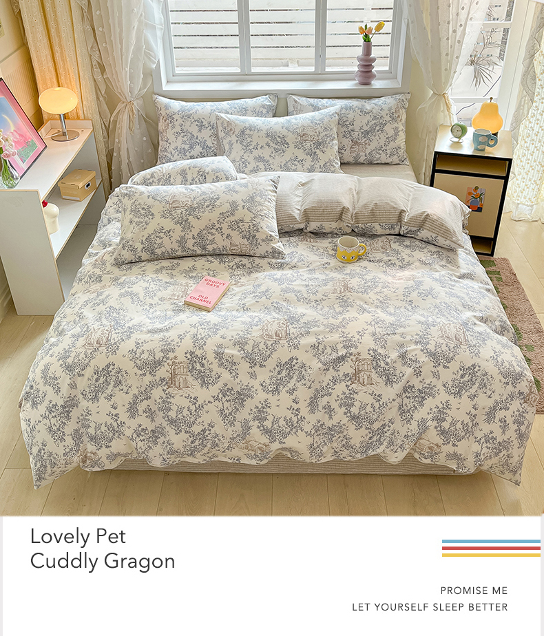 当前位置: 91家纺网 > 商品网购 > 床品套件 > 四件套 > 全棉普通四件套 > 麦伦家居 2024全棉斜纹13372小清新碎花卡通系列四件套 米莱