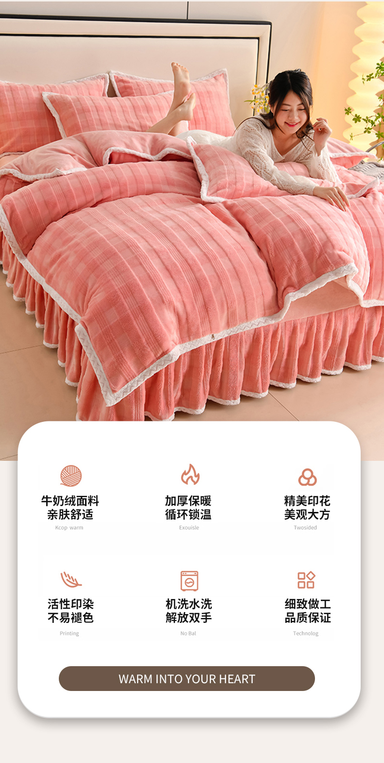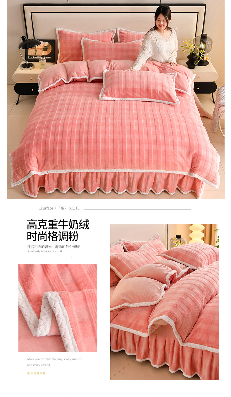 商品名称:星窝家纺 2025新款直播热推8D立体雕花工艺加厚牛奶绒四件套(控价标准不低于139) 时尚格调粉