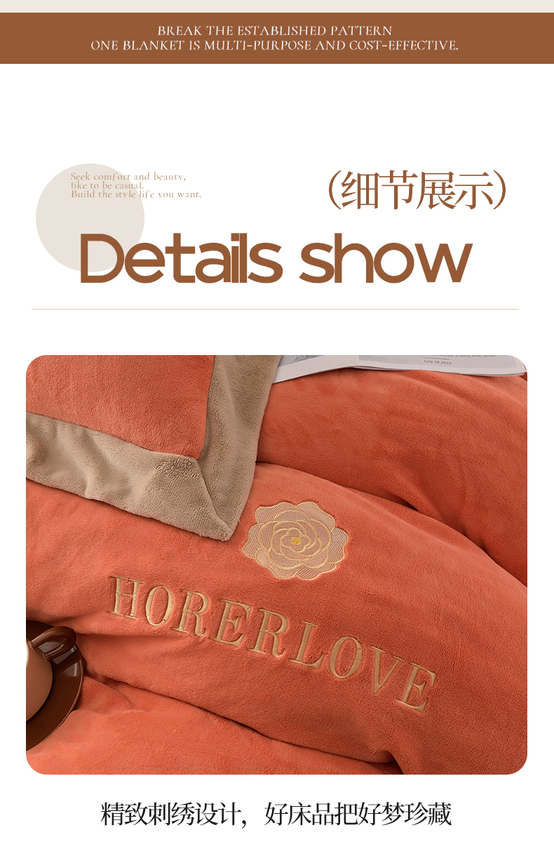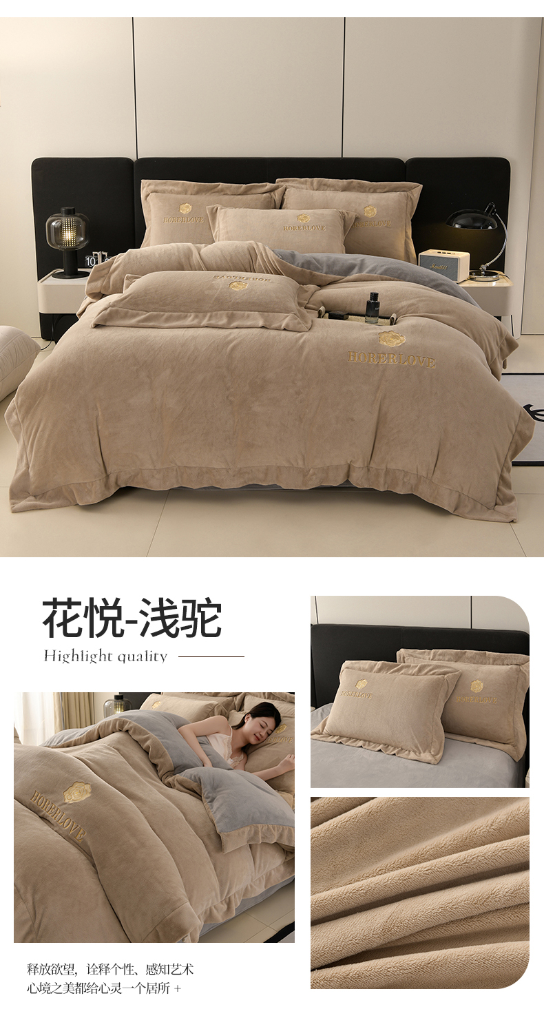 (总)氧家 2025新款高克重牛奶绒拼角刺绣床单床笠床盖款四件套-经典,经典-蓝,经典-橙,经典-豆沙,经典-灰,经典-绿,经典-奶白,经典-紫,经典-棕