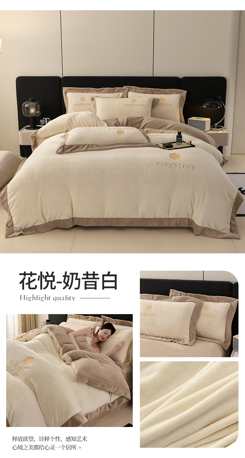 (总)氧家 2025新款高克重牛奶绒拼角刺绣床单床笠床盖款四件套-钟爱,钟爱-白,钟爱-橙,钟爱-豆沙,钟爱-灰,钟爱-蓝,钟爱-绿,钟爱-紫,钟爱-棕