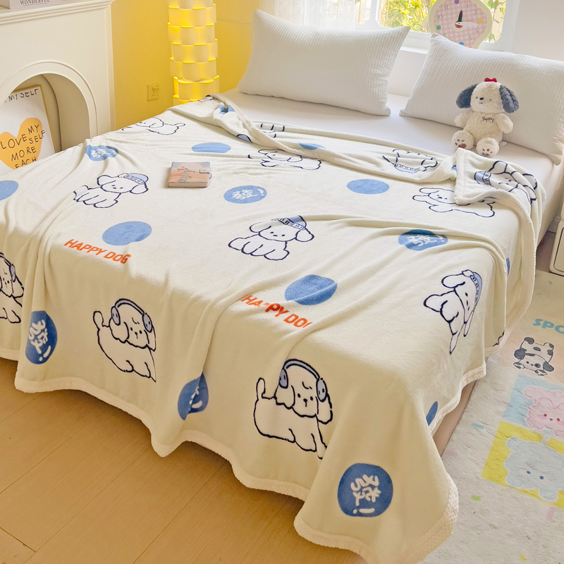 千荨 2024新款亲肤舒适双面贝贝绒包边牛奶绒毛毯 贝贝绒-旺财