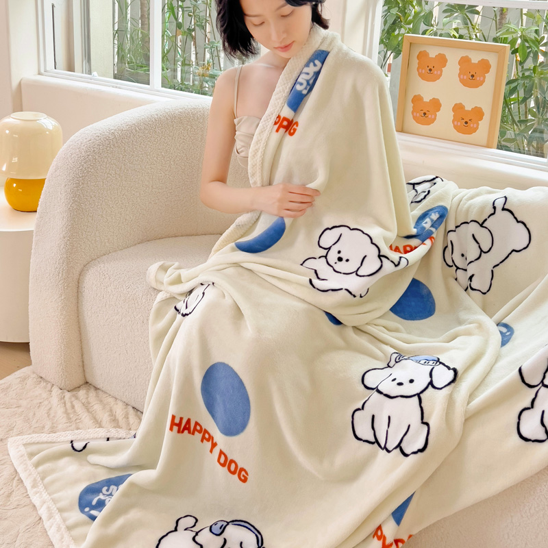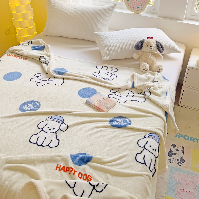 商品名称:千荨 2024新款亲肤舒适双面贝贝绒包边牛奶绒毛毯 贝贝绒-旺财