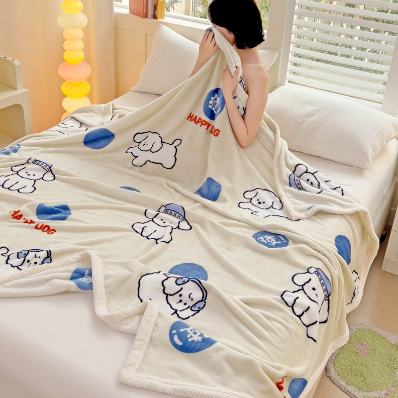 (总)千荨 2024新款多功能牛奶绒毛毯,可爱修狗,蓝心小熊,玩具狗,花花果赖,格子熊猫,幸运狗,熊猫胖达,怦然心动,旺财,萌兔粉,蓝色蝴蝶结,百花齐放