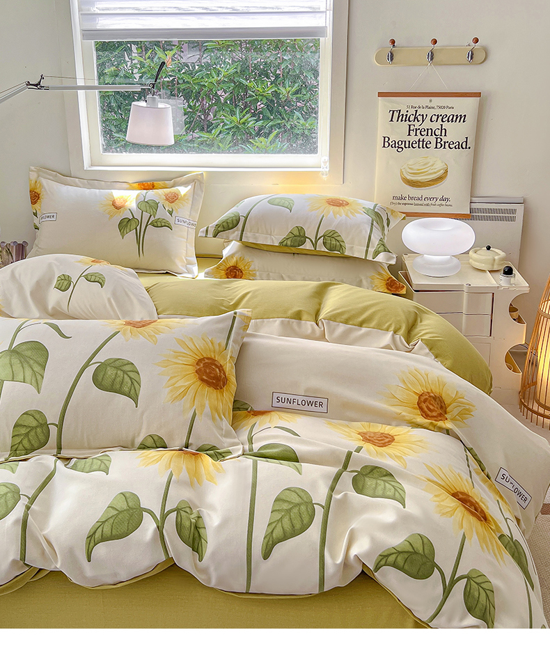 品乐家纺 2024新款全棉生态棉印花磨毛四件套 花园春景-米