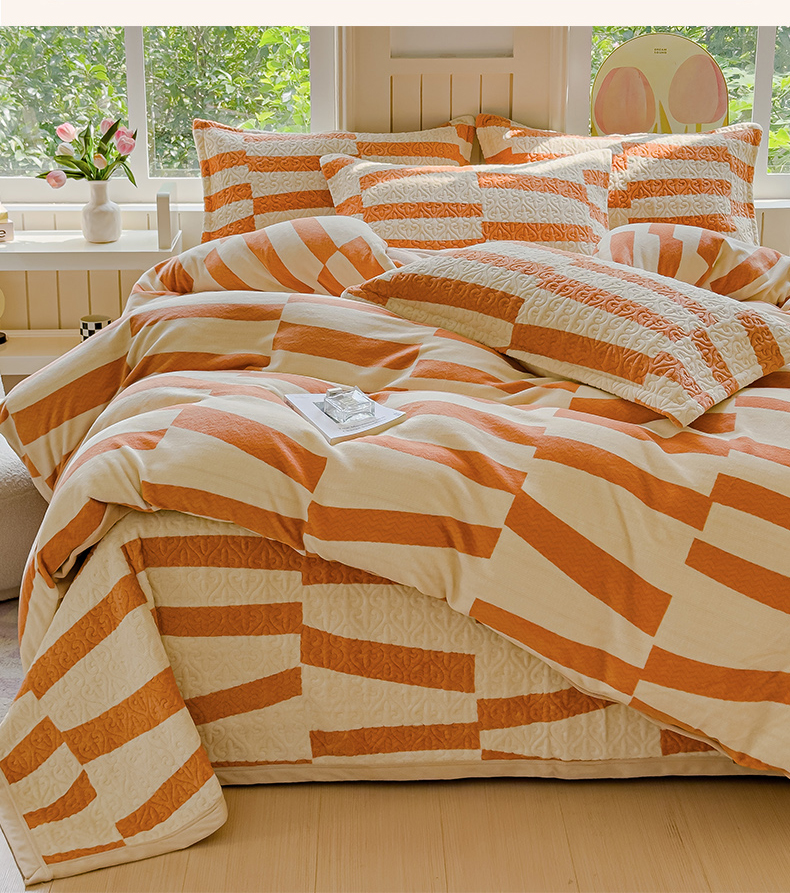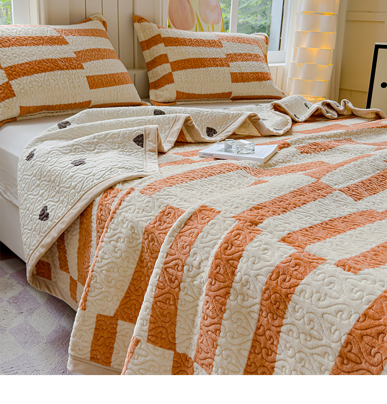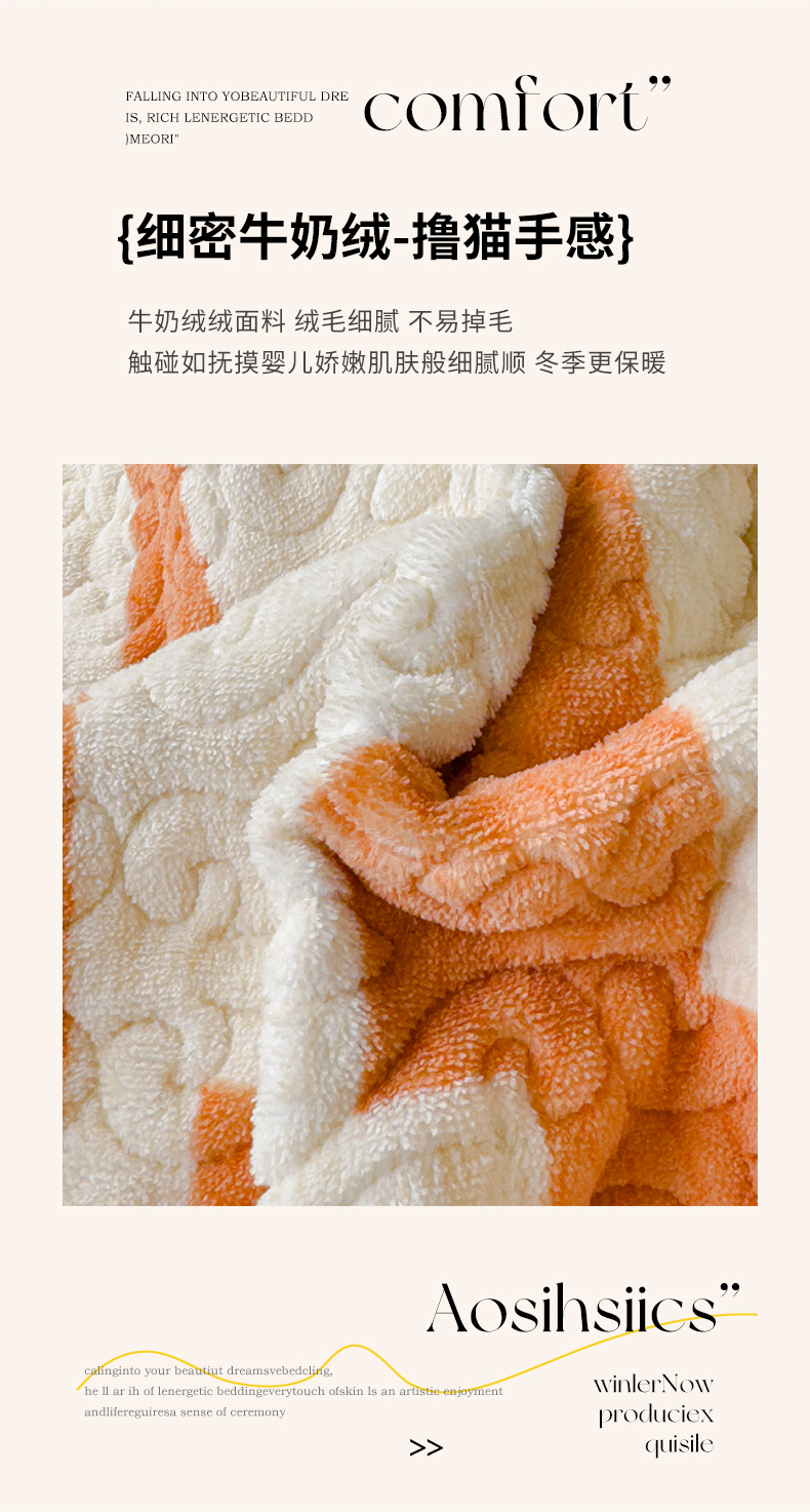 (总)梦精灵家纺 2025新款高克重加厚雕花牛奶绒四件套,菱花格-白,塞纳格-白,流金岁月,烟花,叶璃,赫纹,锦芙,暖意,瑞竹,羽毛