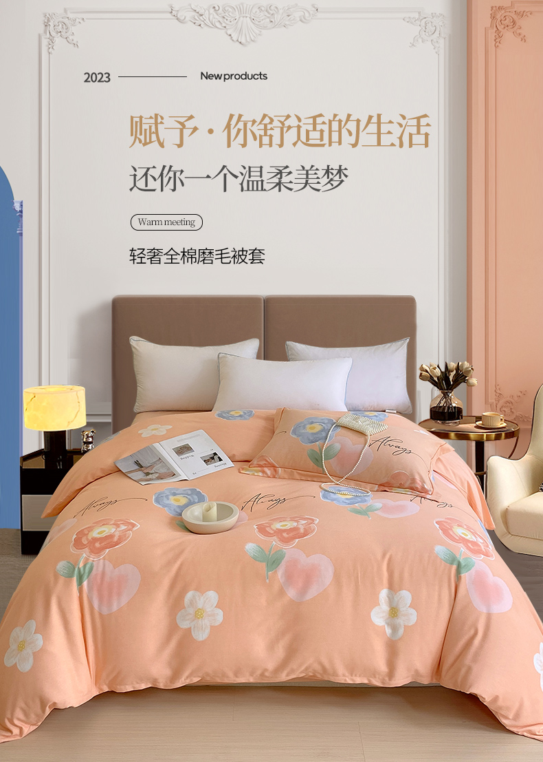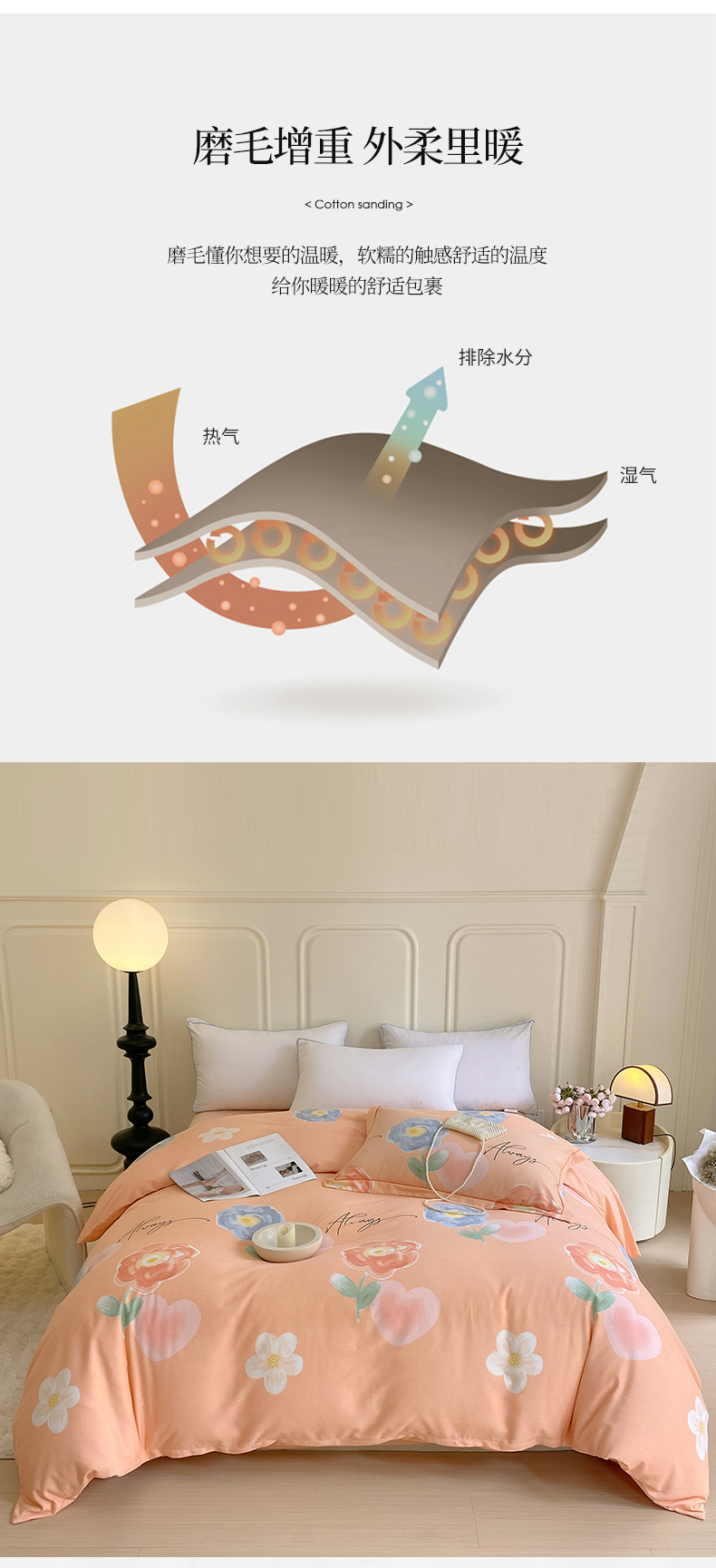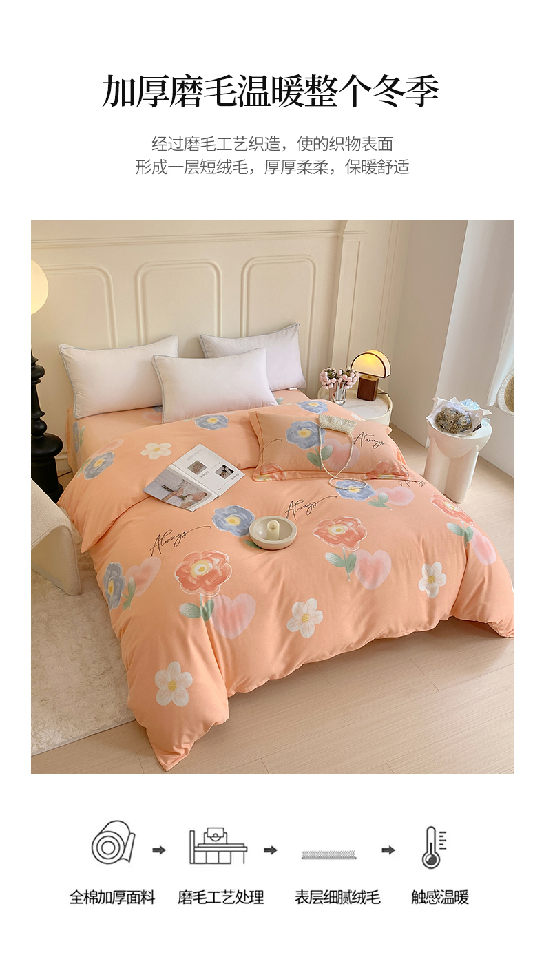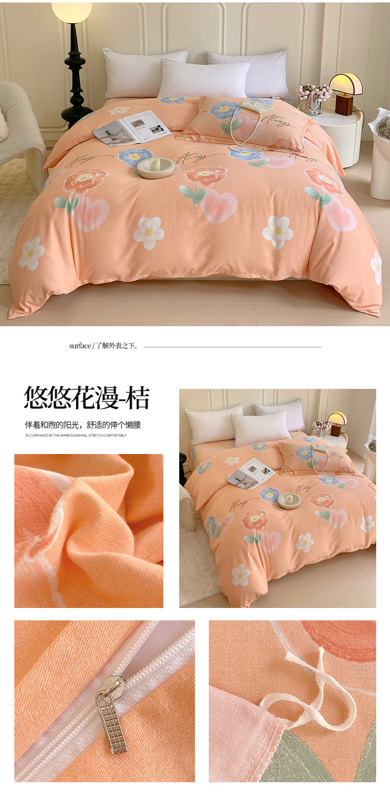 梧桐树 2025新款加厚磨毛单被套 悠悠花漫 桔