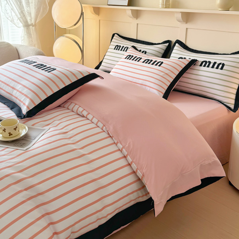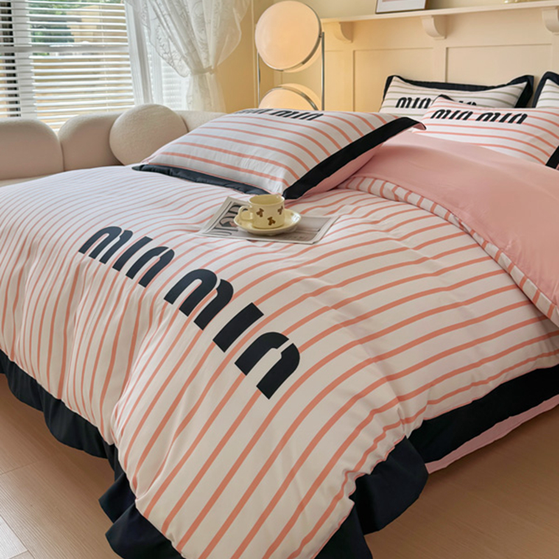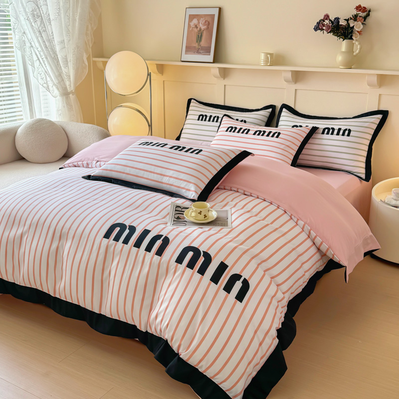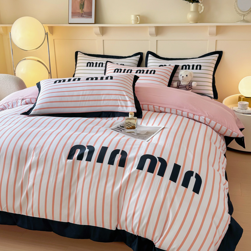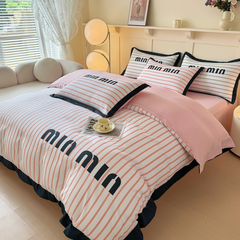 商品名称:色鬼 2024新款印花磨毛四件套仿大牌直播爆款网红四件套 条纹粉