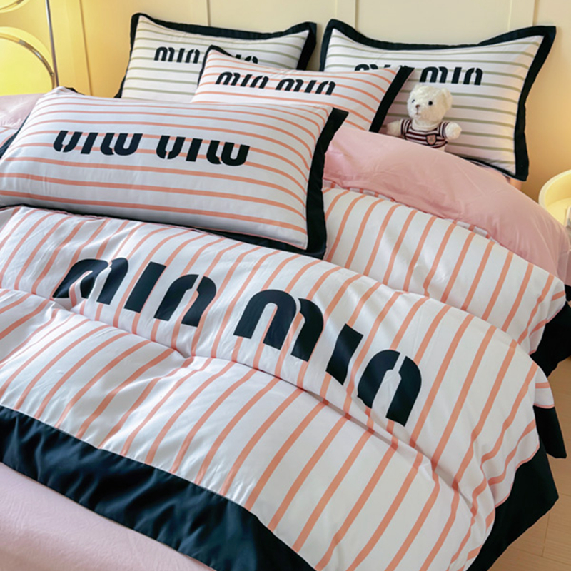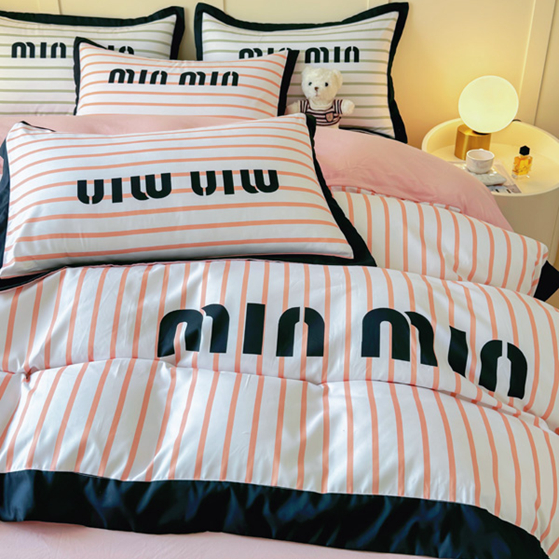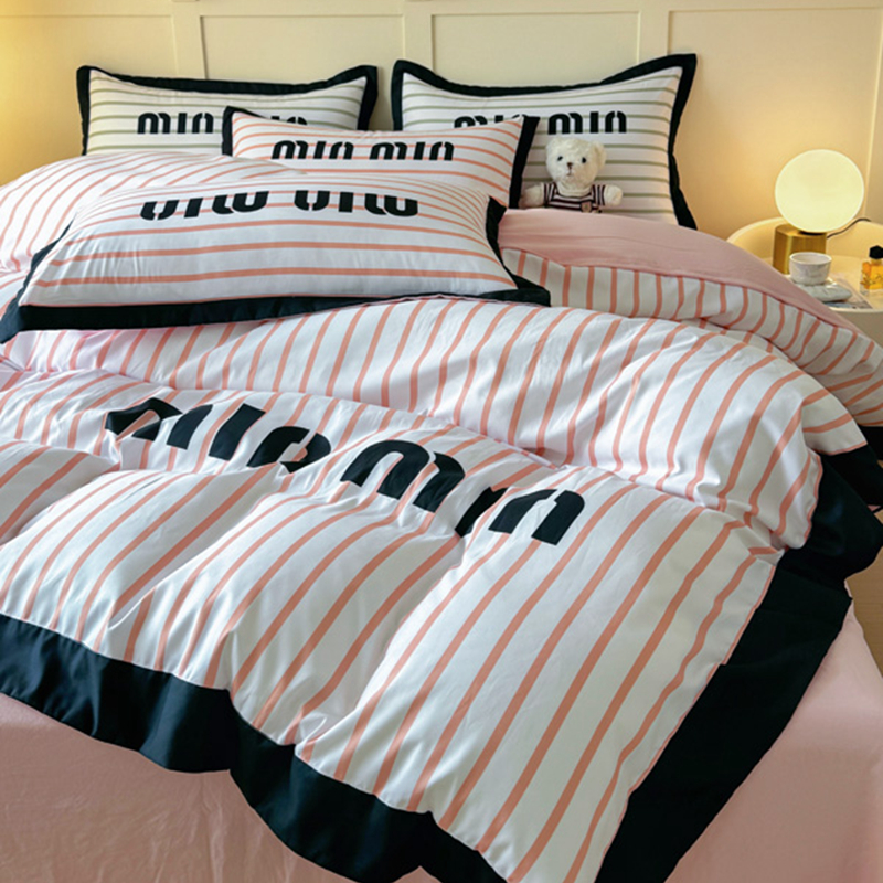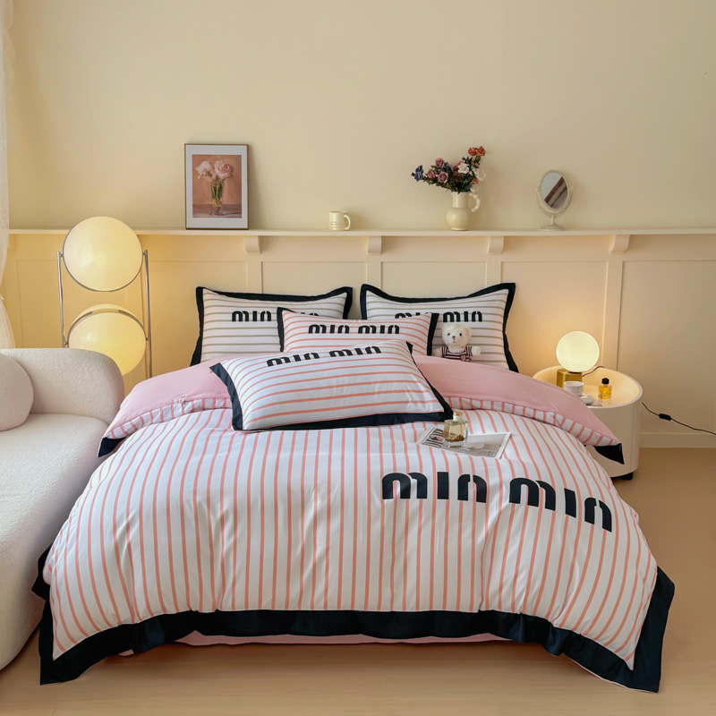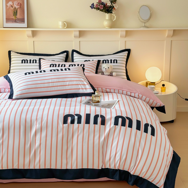 商品名称:色鬼 2024新款印花磨毛四件套仿大牌直播爆款网红四件套 条纹粉