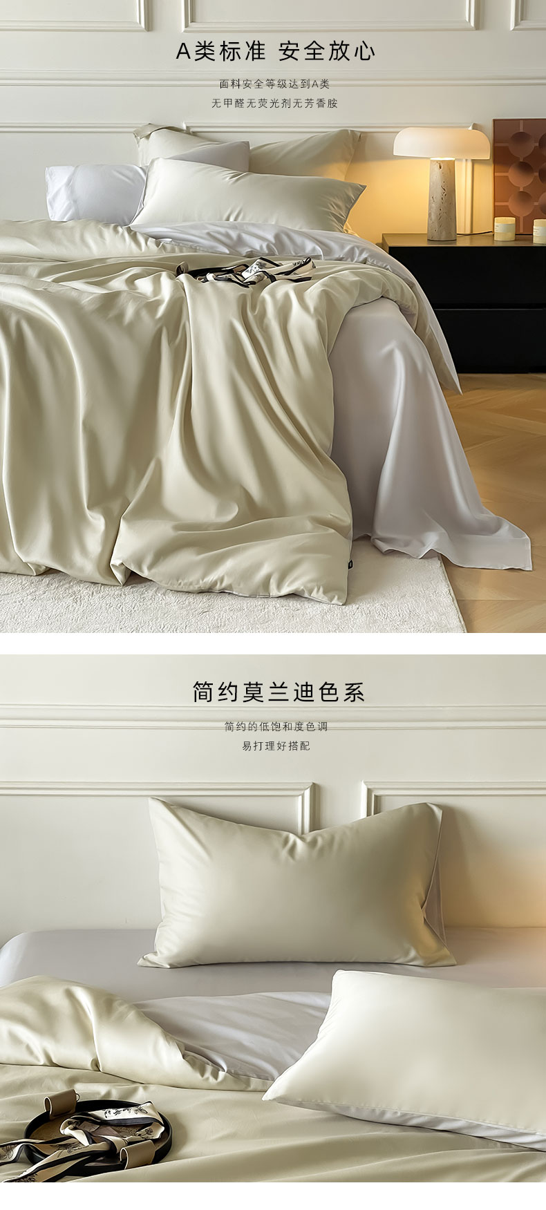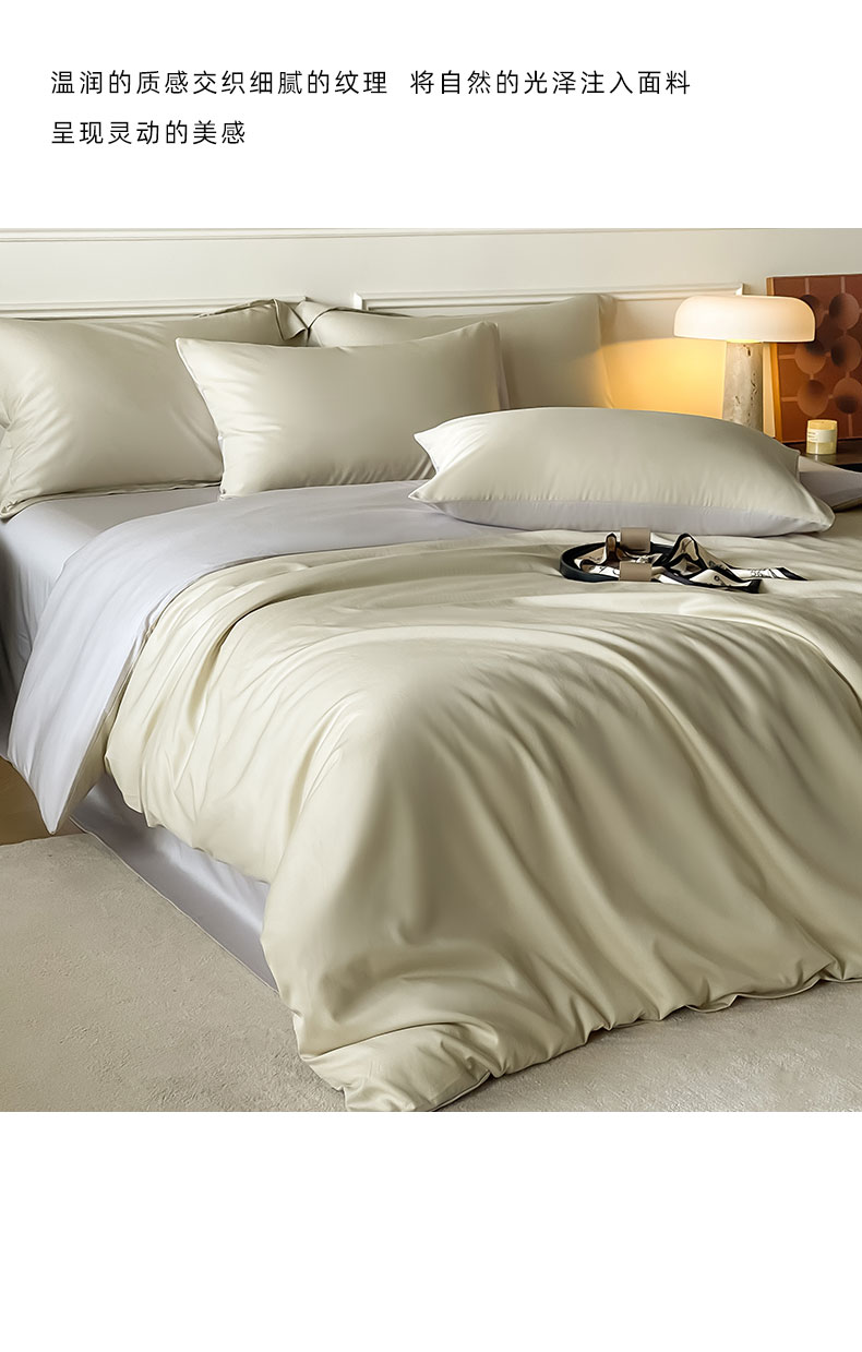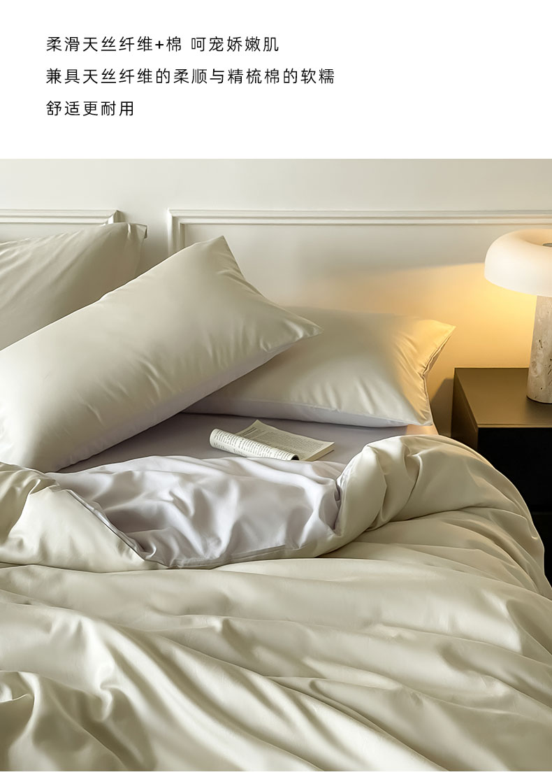 商品名称:Mr.pig猪先生水洗棉 2024新款天丝棉纯色四件套 燕麦奶+朦胧灰