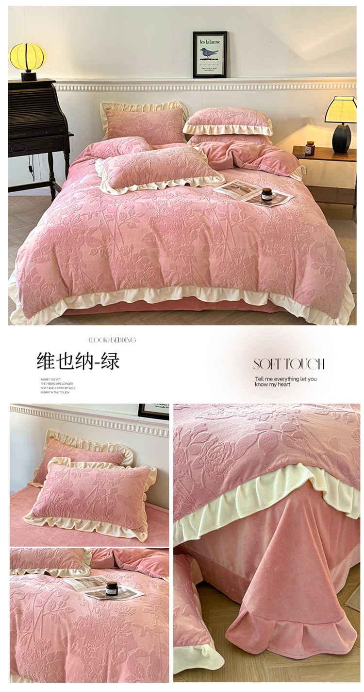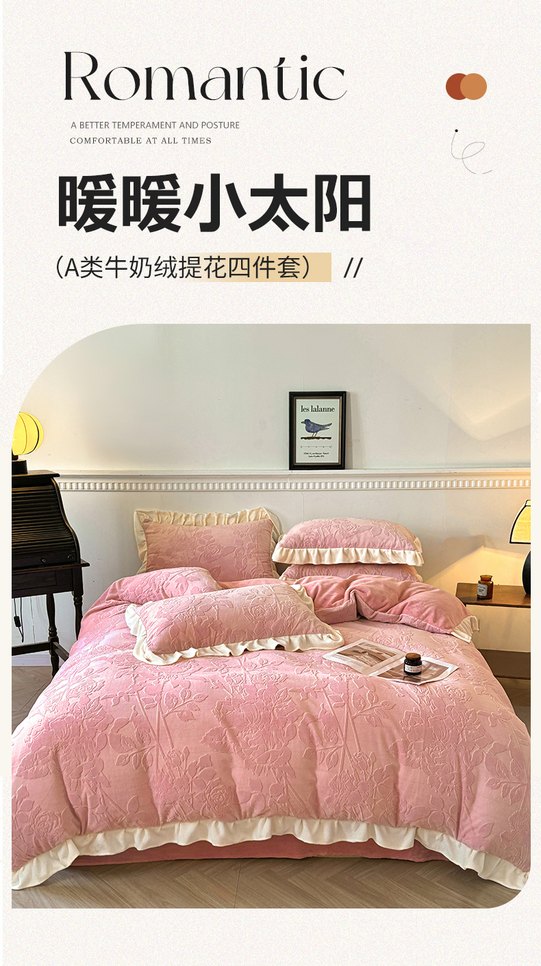 (总)大境 2025秋冬新款A类230克牛奶绒雕花烂花绒宝宝绒床笠款床单款四件套,蝶恋花语,花恋,浪漫花香 粉,浪漫花香 绿,叶之恋,郁金香粉,月光森林