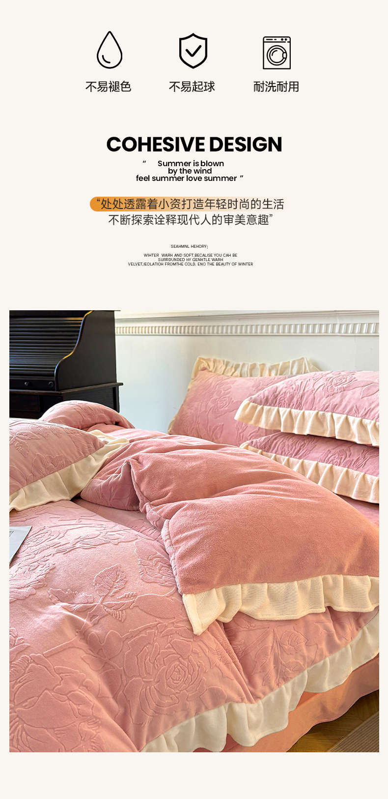 商品名称:大境 2024新款维也纳牛奶绒提花四件套维也纳-豆沙