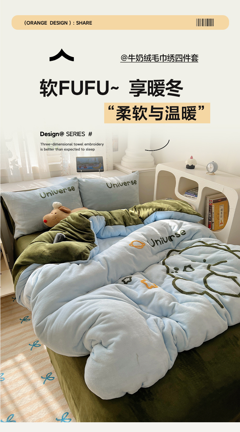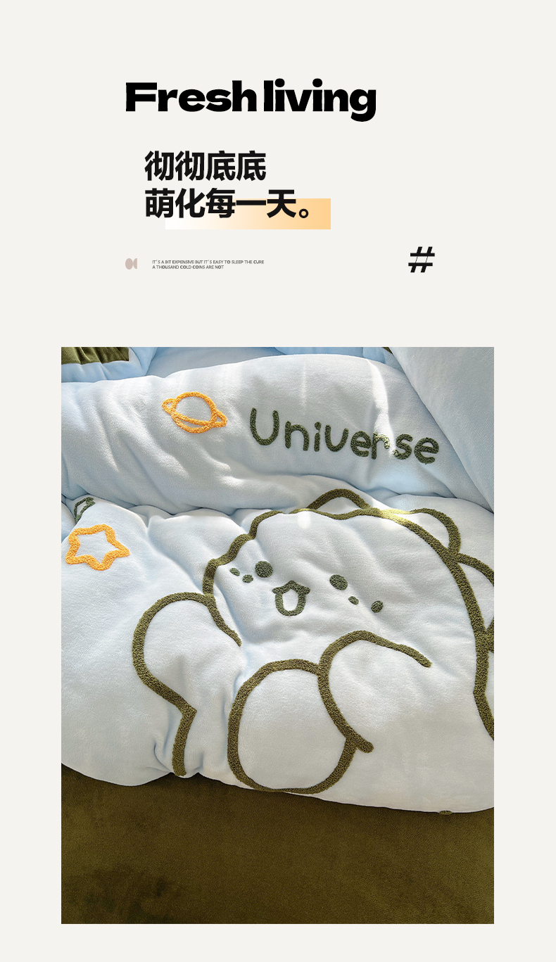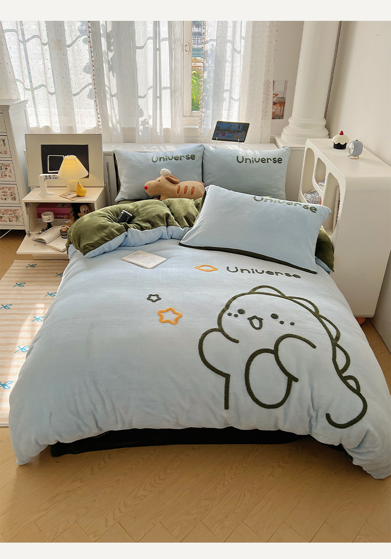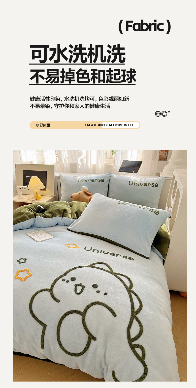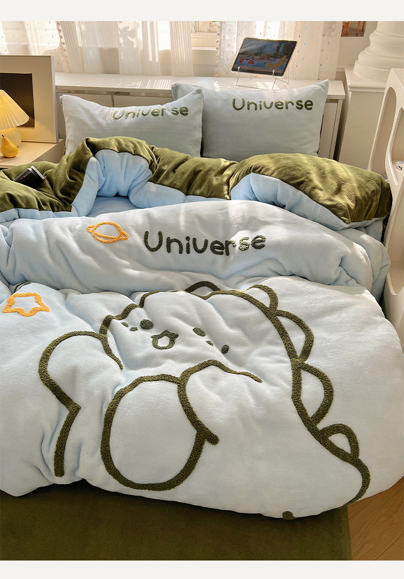 雅居纺家纺 2024新款大版毛巾绣牛奶绒四件套 太空恐龙