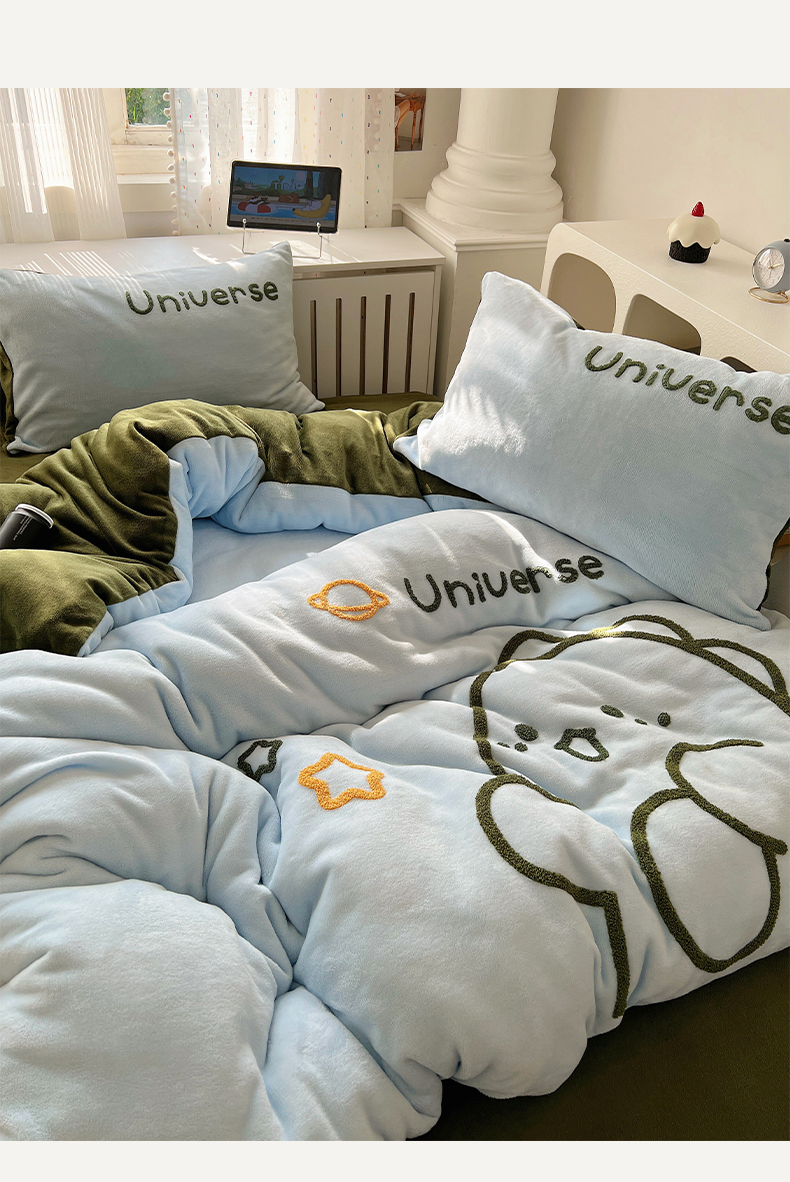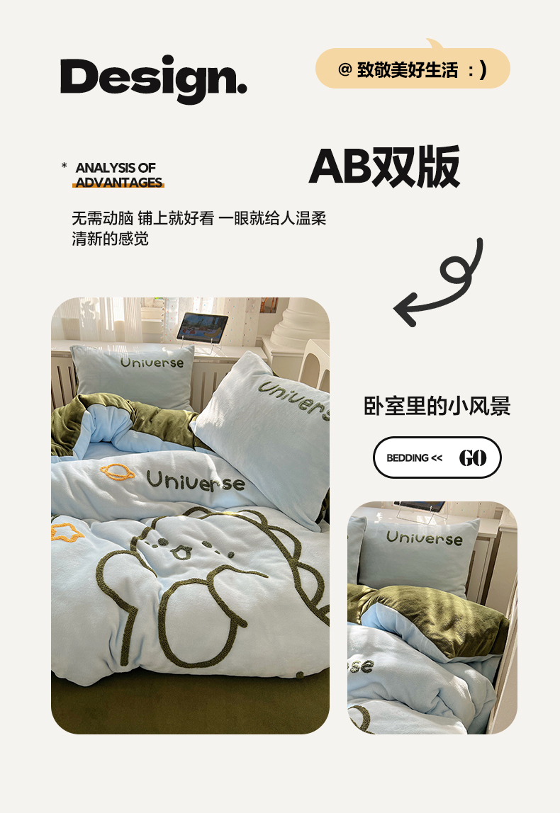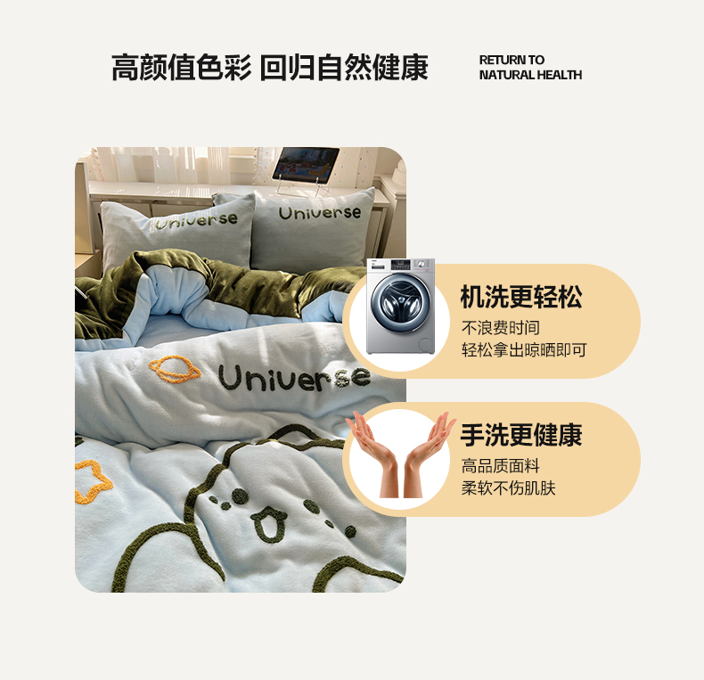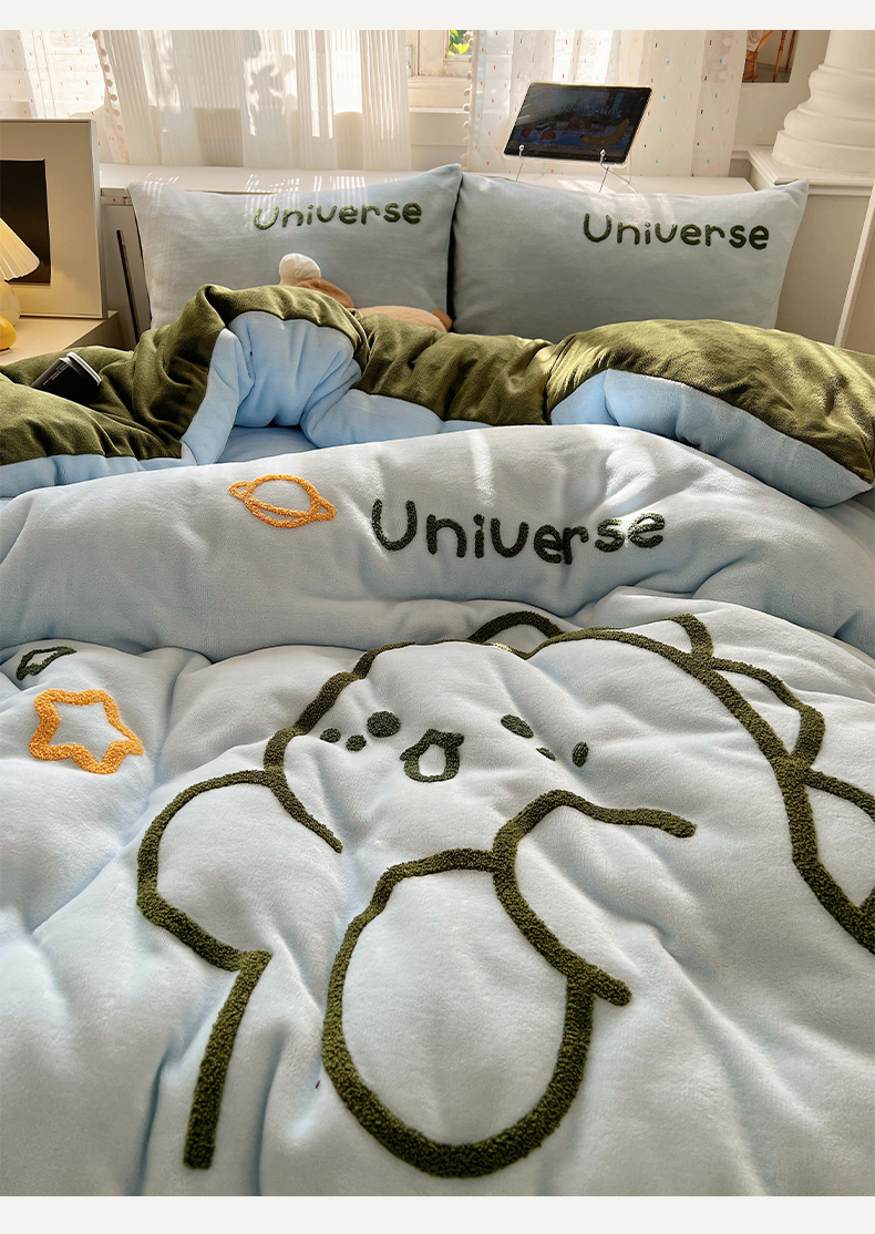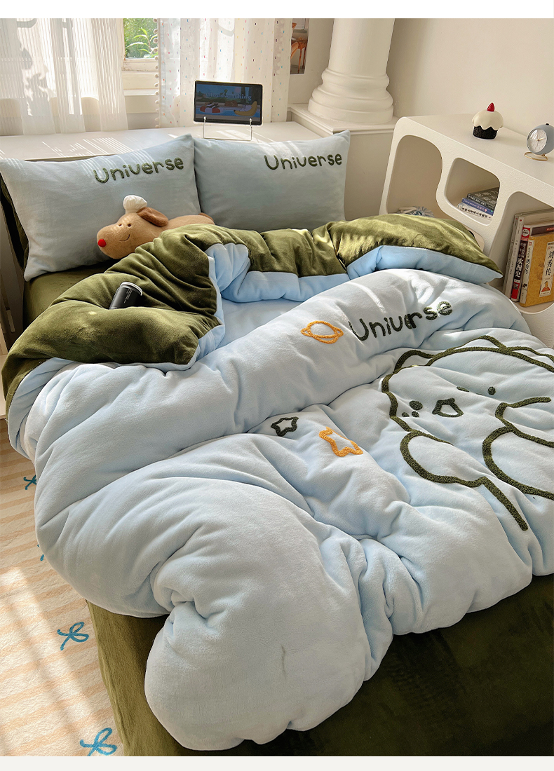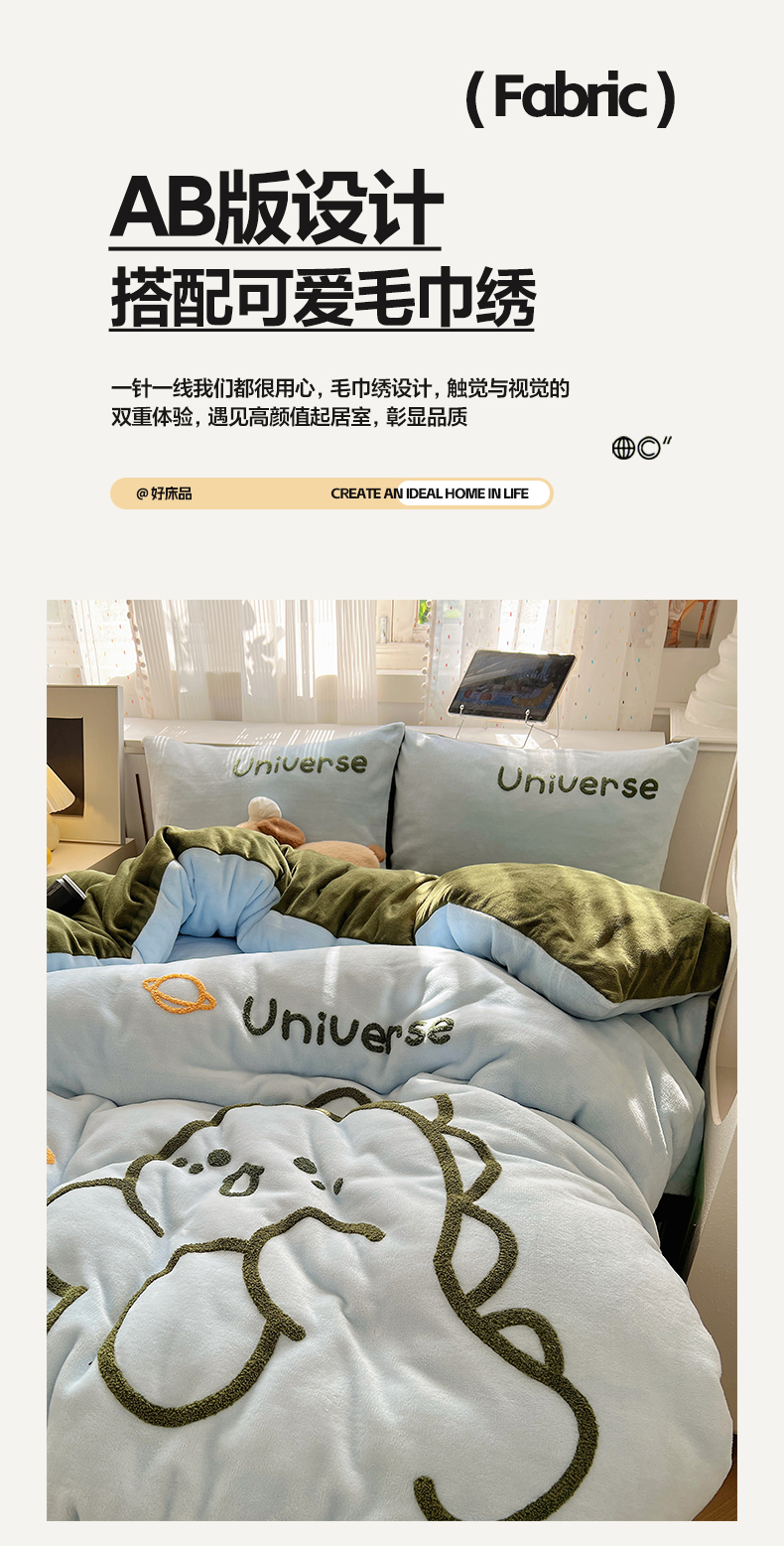 雅居纺家纺 2024新款大版毛巾绣牛奶绒四件套 太空恐龙
