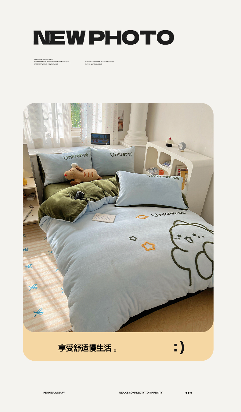 (总)雅居纺家纺 2025新款简约兔绒球球保暖舒适四件套-波点,波点-白咖,波点-粉黄,波点-咖,波点-蓝黄