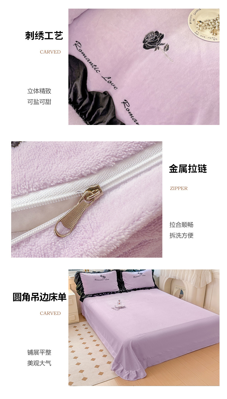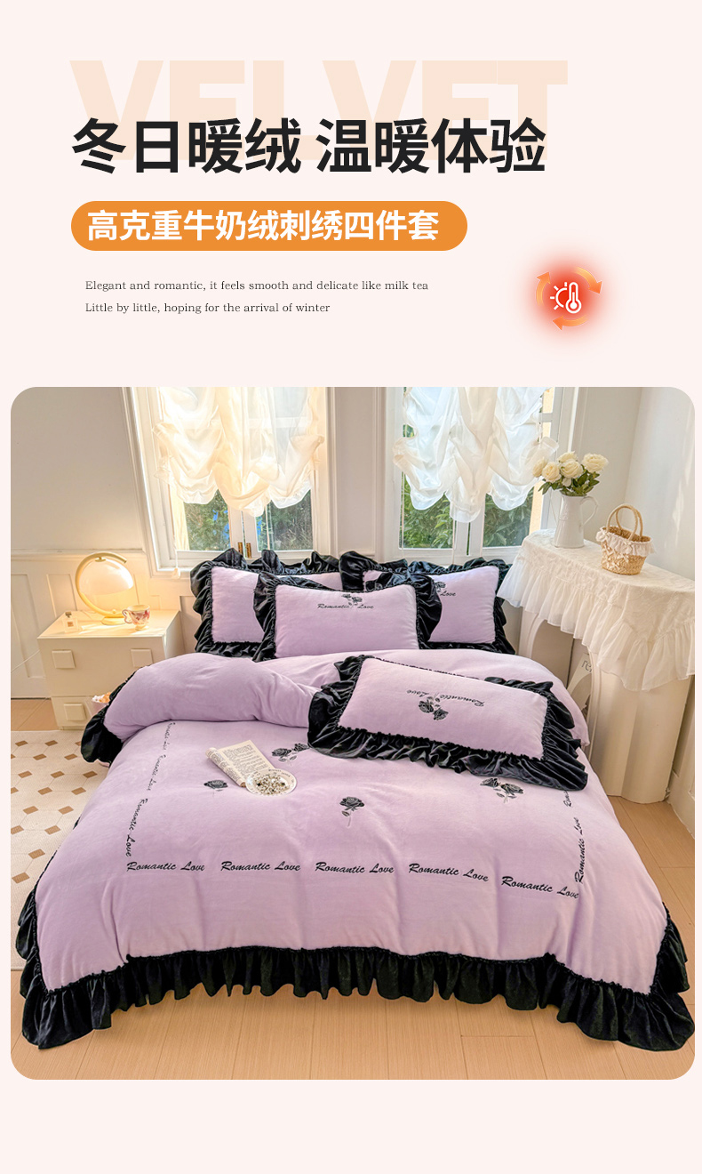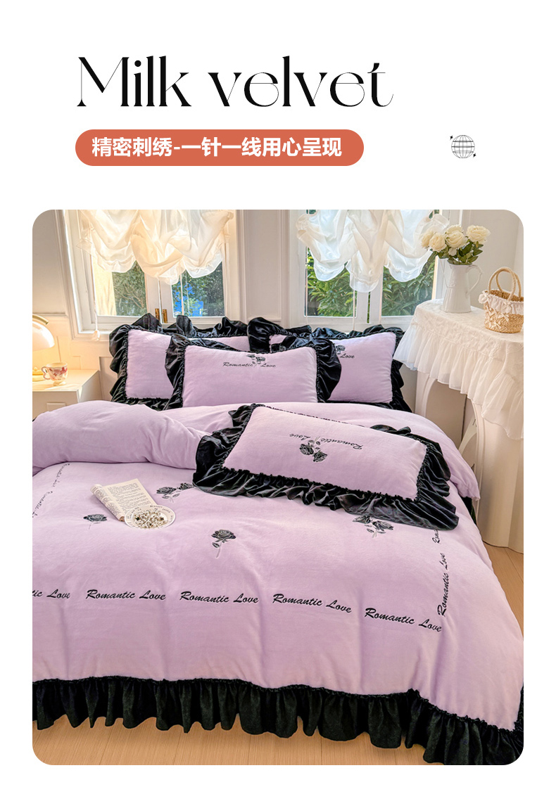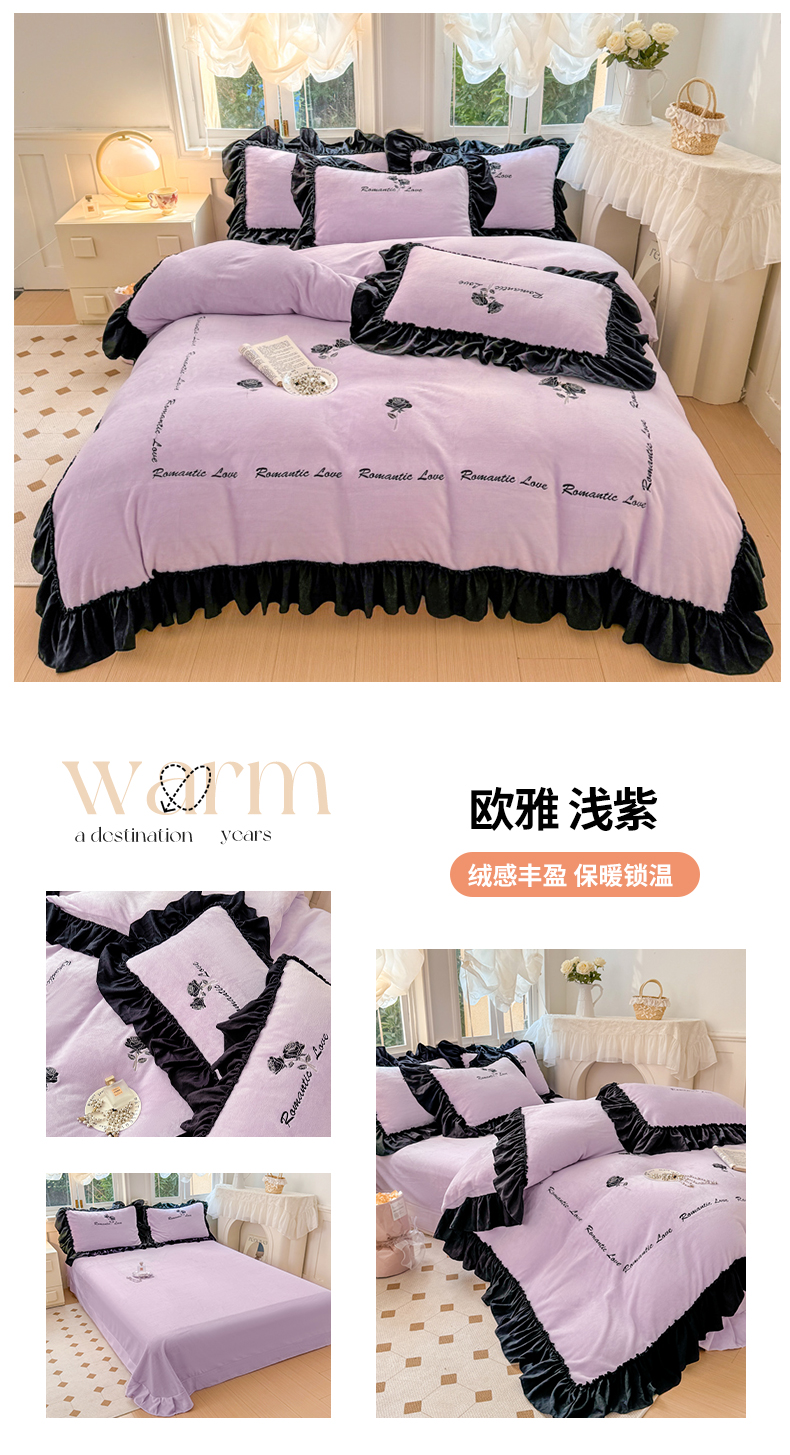 凯美家居 2024新款法式牛奶绒刺绣四件套-欧雅 场景二 欧雅-浅紫
