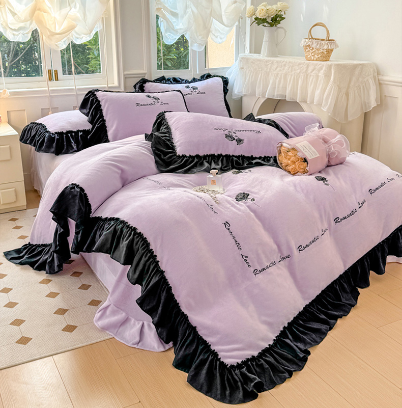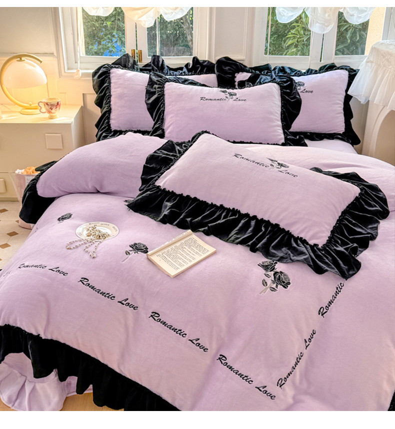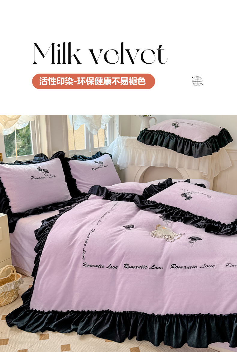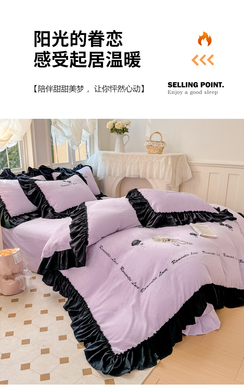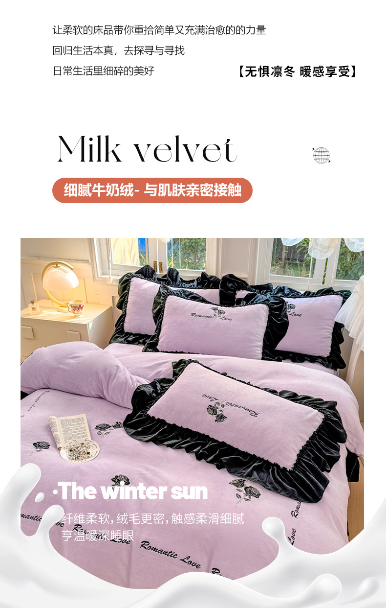凯美家居 2024新款法式牛奶绒刺绣四件套-欧雅 场景二 欧雅-浅紫