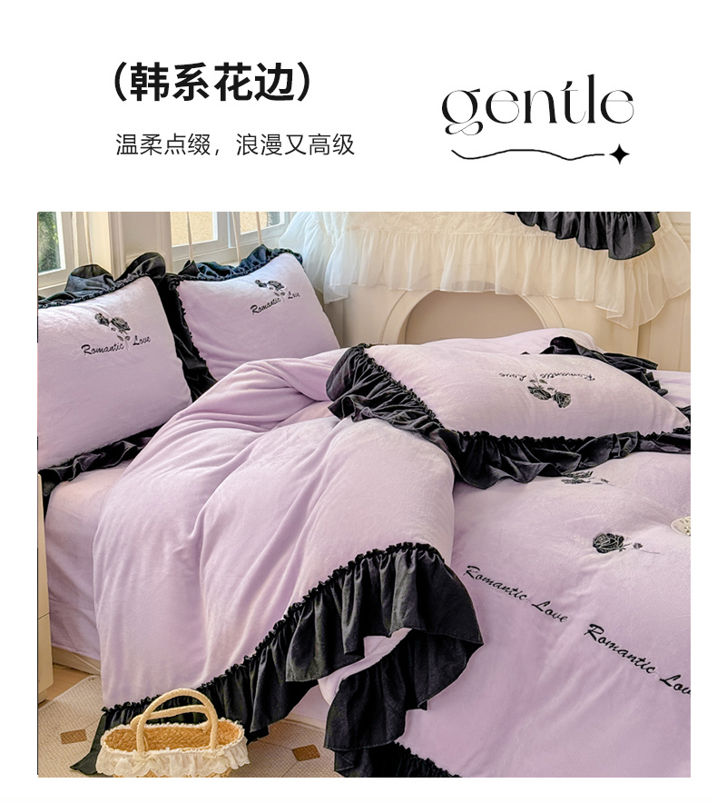 商品名称:凯美家居 2024新款法式牛奶绒刺绣四件套-欧雅 场景二 欧雅-浅紫