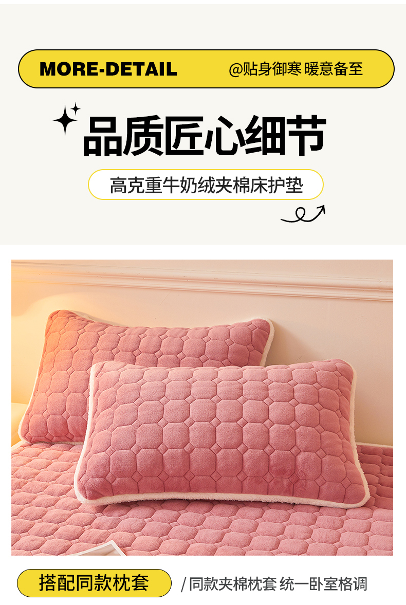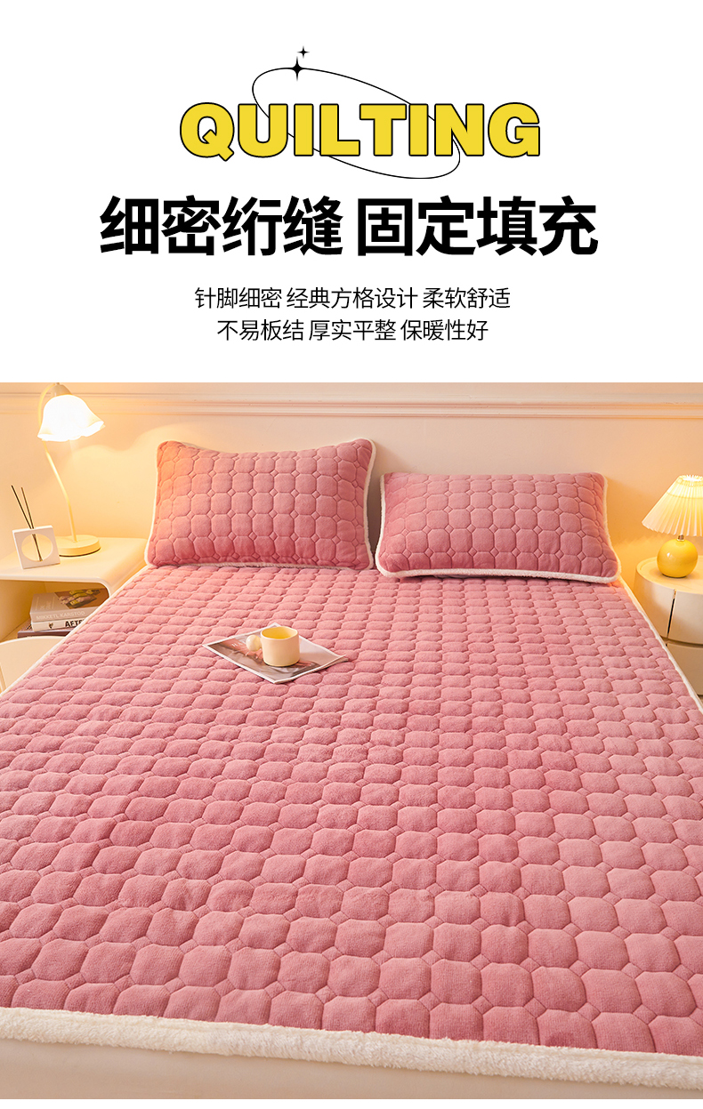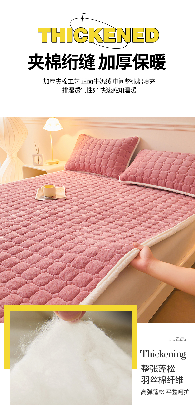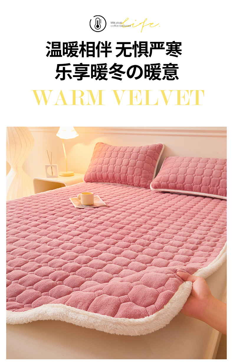 予梦家纺 2024新款纯色牛奶绒夹棉床褥床护垫-莫甘娜 莫甘娜-豆沙