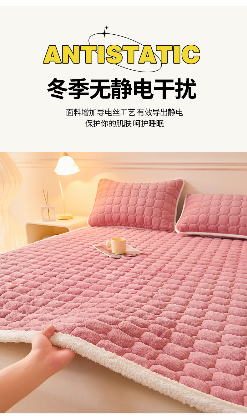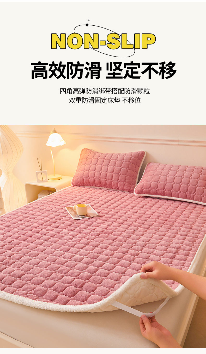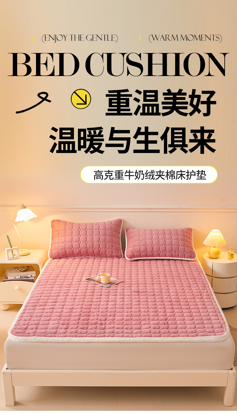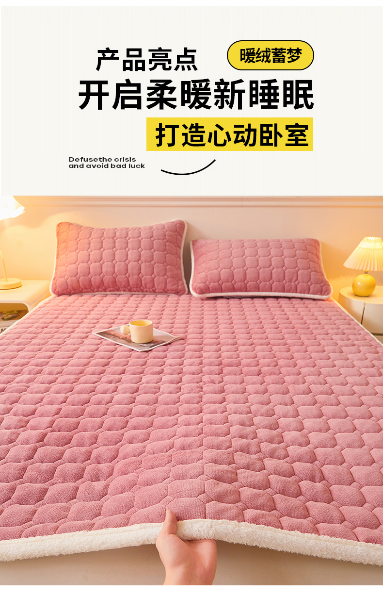 予梦家纺 2024新款纯色牛奶绒夹棉床褥床护垫-莫甘娜 莫甘娜-豆沙